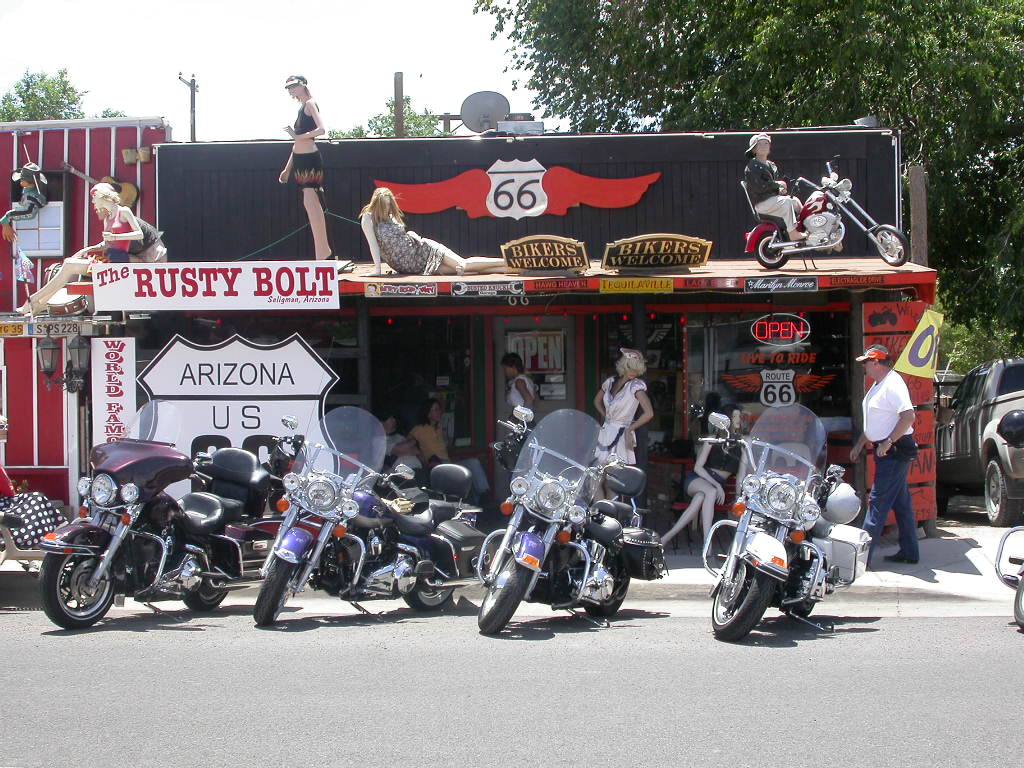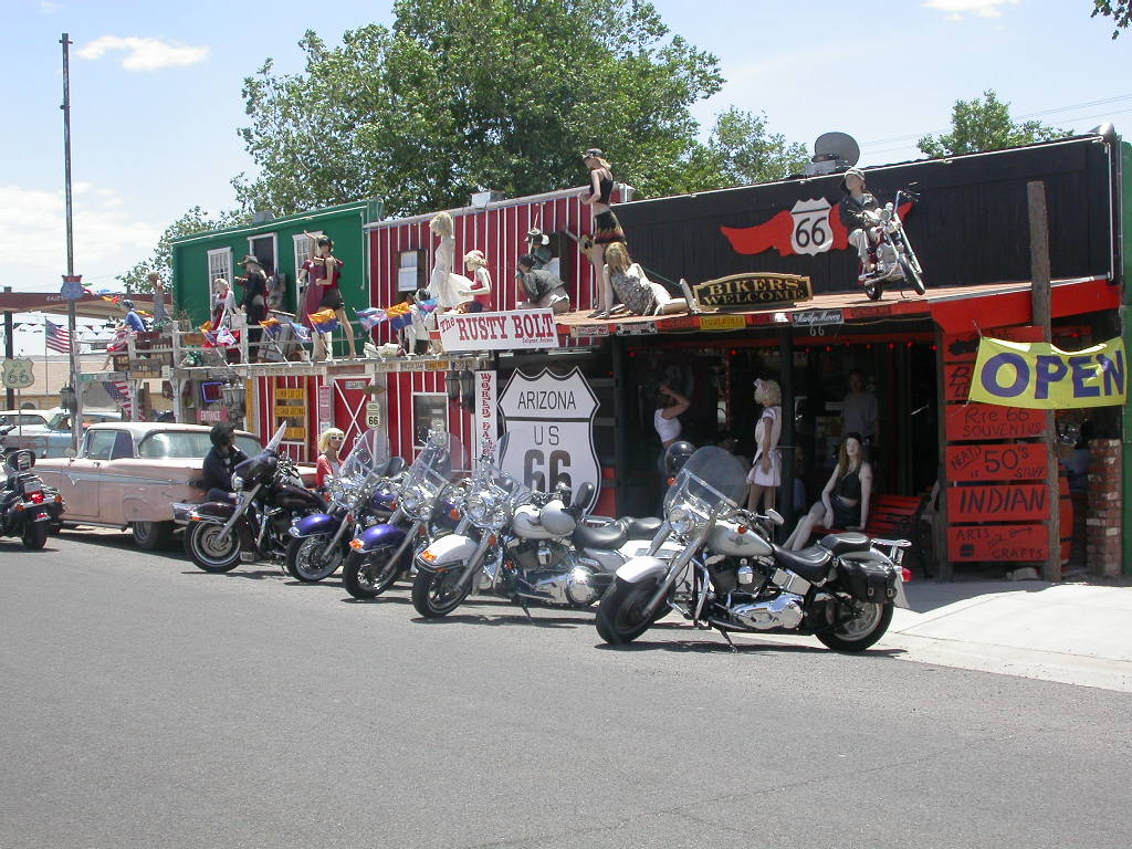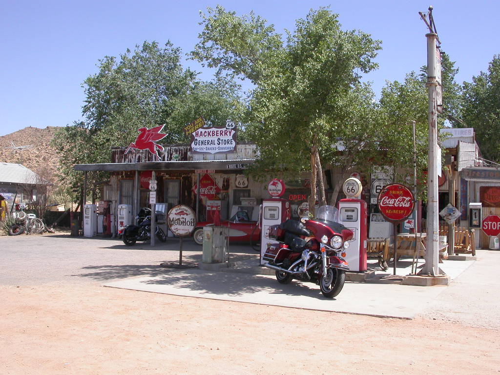 Nach dem einem kurzen Stopp beim lokalen Harley-Dealer wurde das längste noch zusammengehörende Stück der 'Mother-Road' von Kingman nach Seligman in freier Fahrt unter die Räder genommen. Dieses freie Fahren artete aber eher zum freien Jagen im Harley-unüblichen Tiefflugtempo aus und die Zeitzeugen der Route 66, welche zu einem kurzen Stopp einladen, wurden regelrecht links und rechts liegen gelassen.
