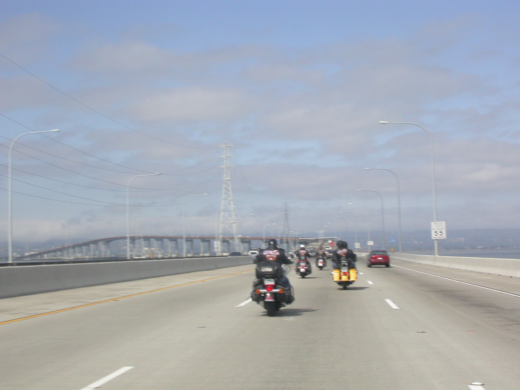 Für das Sight-Seeing in San Francisco stand erstmal 45 Minuten Autobahnfahrt über die Bay und dann in die Stadt hinein auf dem Programm. Es ist schon was ganz anderes hier im dichten Verkehr auf bis zu 6 Spuren, wo links und rechts Überholen erlaubt ist, im Konvoi zu fahren als auf den verlassenen einsamen Strassen der letzten Tage.