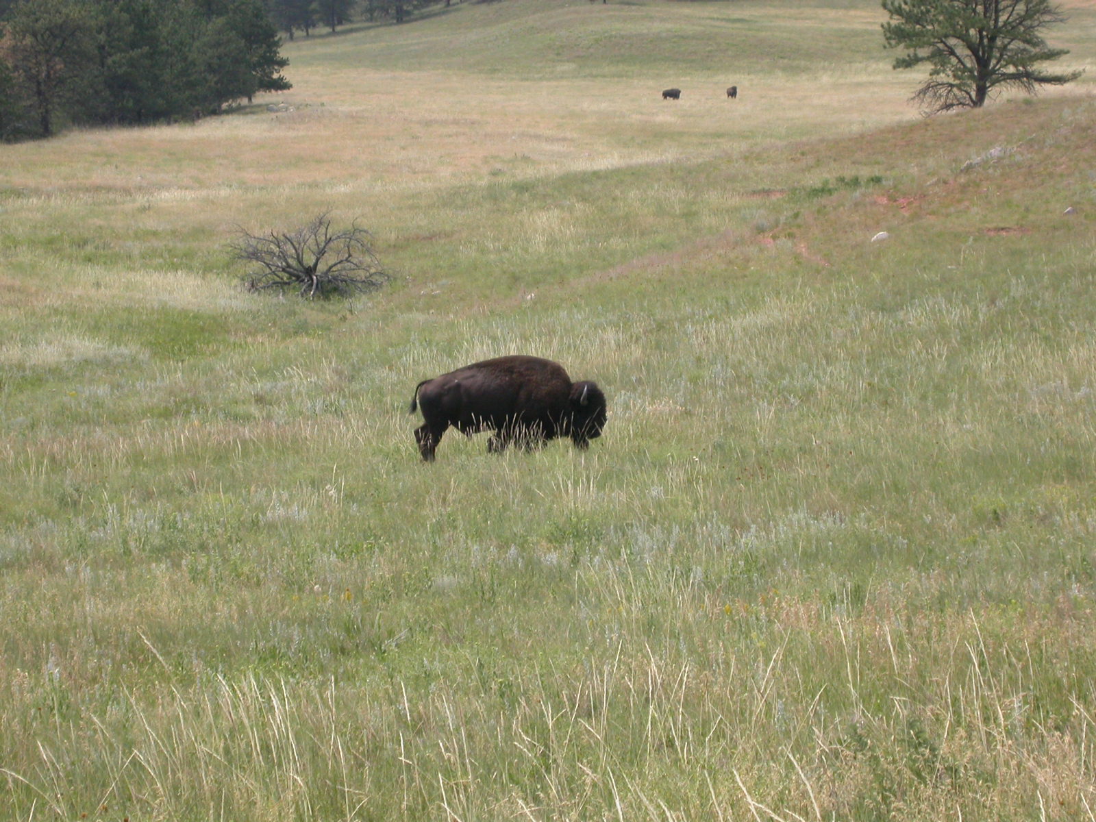 Zuerst besuchten wir das Crazy Horse Memorial. Hier bauen (sprengen) die Indianer für ihren Häuptling eine Gedenkstätte, die um ein Vielfaches grösser als Mt. Rushmore werden soll. Anschliessen war Genussfahren durch den Custer State Park angesagt, und dort gingen wir auf die Suche der Bisons. Wir hatten es schon bald aufgegeben sie zu finden, doch auf einmal waren sie da. Auf der Rückfahrt nach Hill City schauten wir noch kurz bei den vier ehemaligen Präsidenten der Staaten vorbei.
