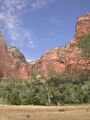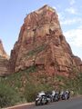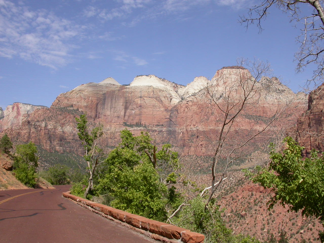 Durch den Dixie Nationalforest erreichten wir den Zion Nationalpark. Seit meinem letzten Besuch 1997 hat sich da die ganze Zugangsregelung geändert. Mit den Privatfahrzeugen ist es nämlich nun verboten in den Zion Park hinein zu fahren, dafür stehen Touristenbusse bereit.