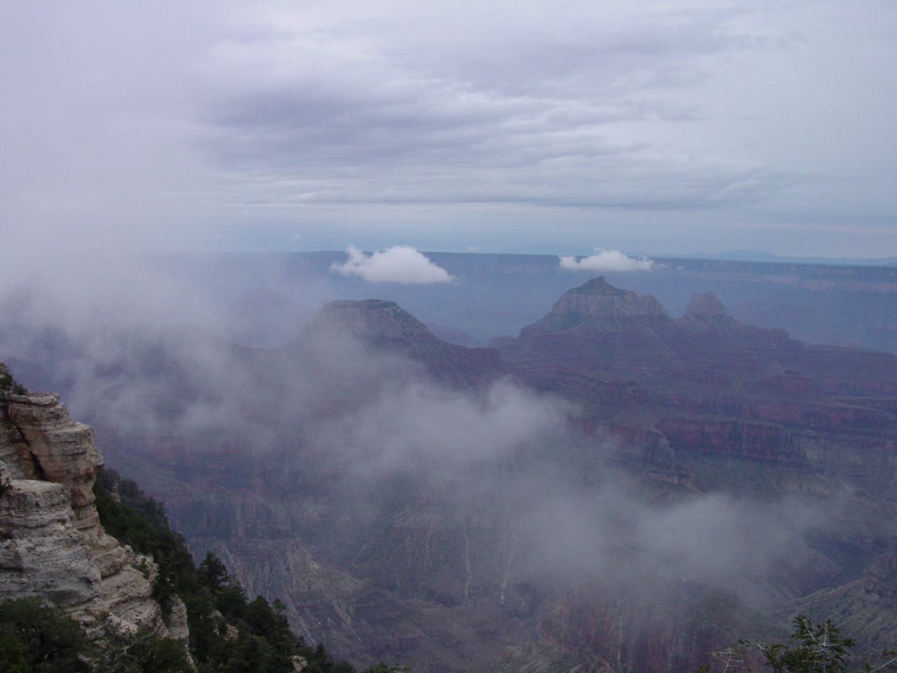 Entgegen dem üblichen und bekannten Ort, dem South Rim, mit seinen touristischen Einrichtungen, wählten wir den North Rim als Ziel. Hier in der Lodge bezogen wir unsere Blockhäuser für die Übernachtung und anschliessend liessen wir die nahe Naturgewalt auf uns wirken. Der North Rim ist meiner Meinung nach viel eindrücklicher, denn man ist hier direkt am Abgrund und die Schluchten und Berge sind hier viel näher und gewaltiger als am South Rim.