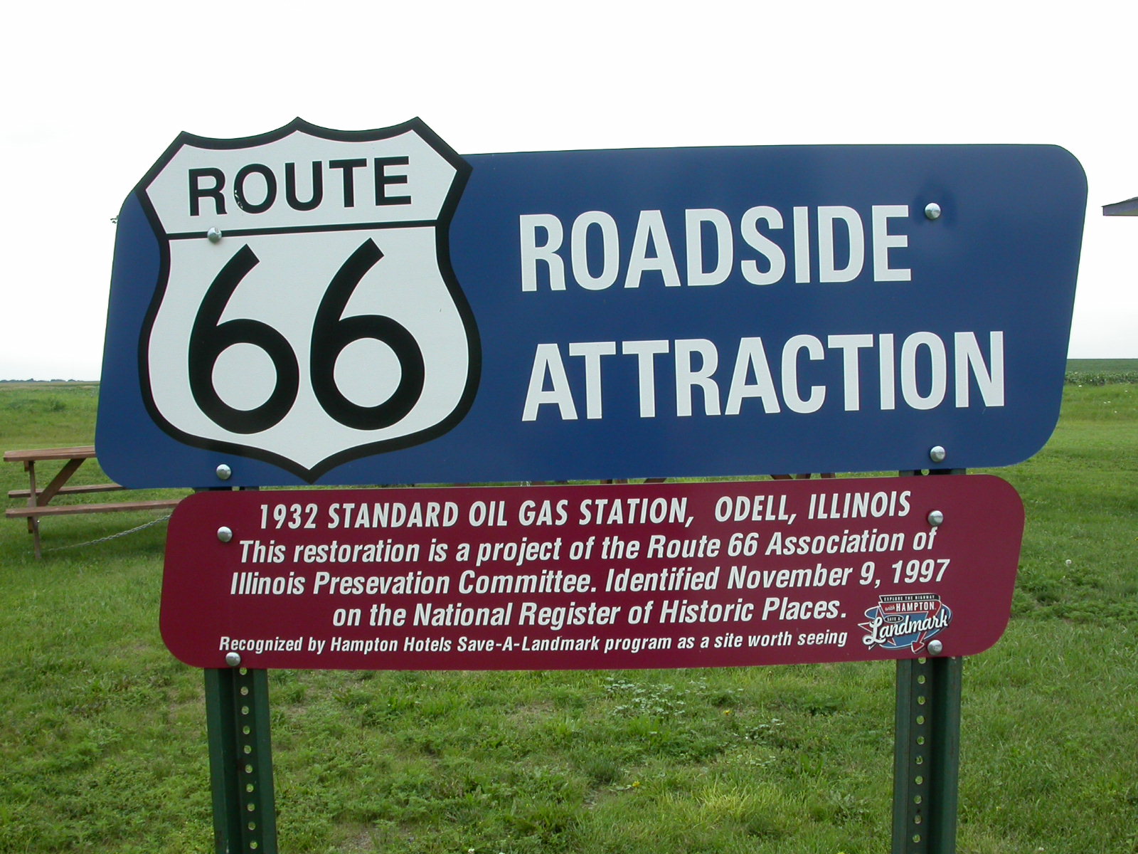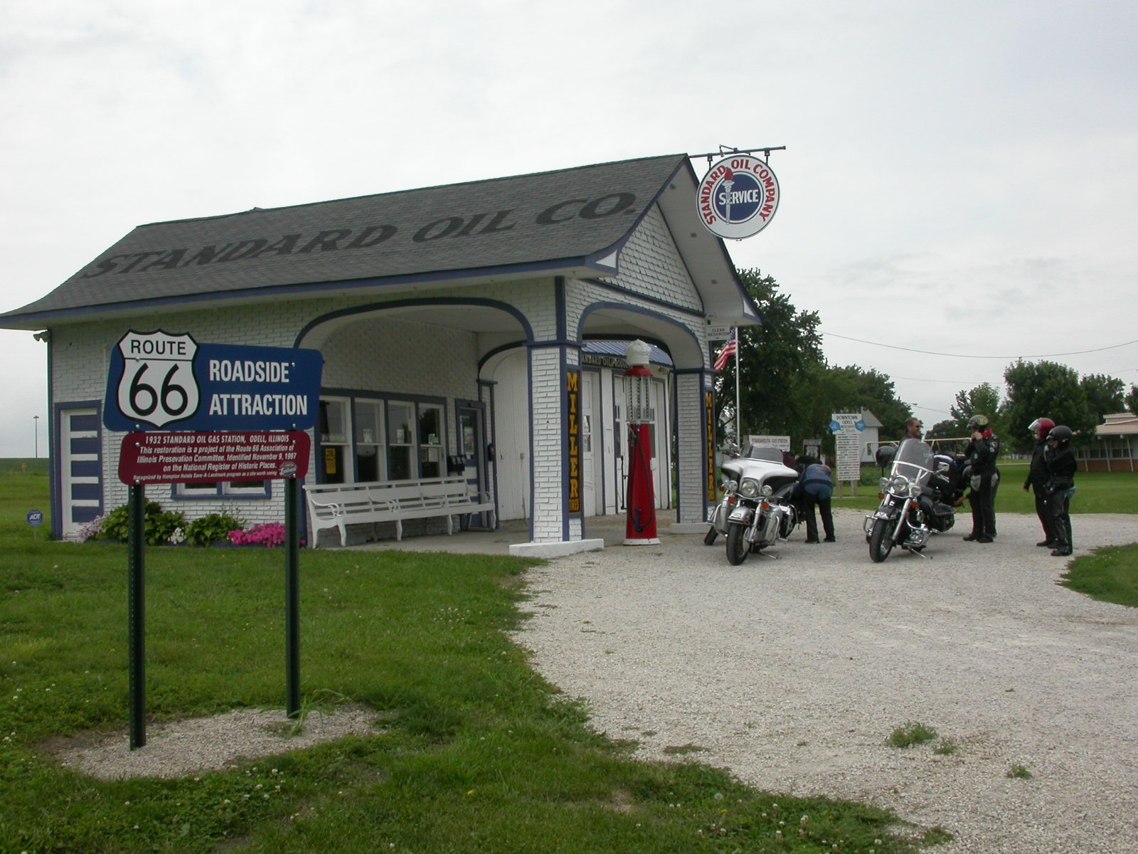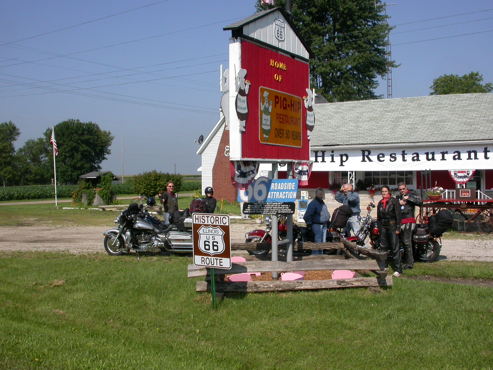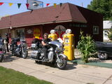 Chicago verliessen wir auf der 'Toll-Road' und nicht über die Route 66, denn sonst hätten wir zuviel Zeit im Strassen- und Ampelgewirr verloren. Schon bald trafen wir ausserhalb der Stadt auf die 'Route 66', welche wir in den nächsten zwei Tagen befuhren. Entlang der Strecke gab es viele Fotosujets (alte Tankstellen, Gebäude, Gift-Shops, etc.), die immer wieder zum Anhalten aufforderten.