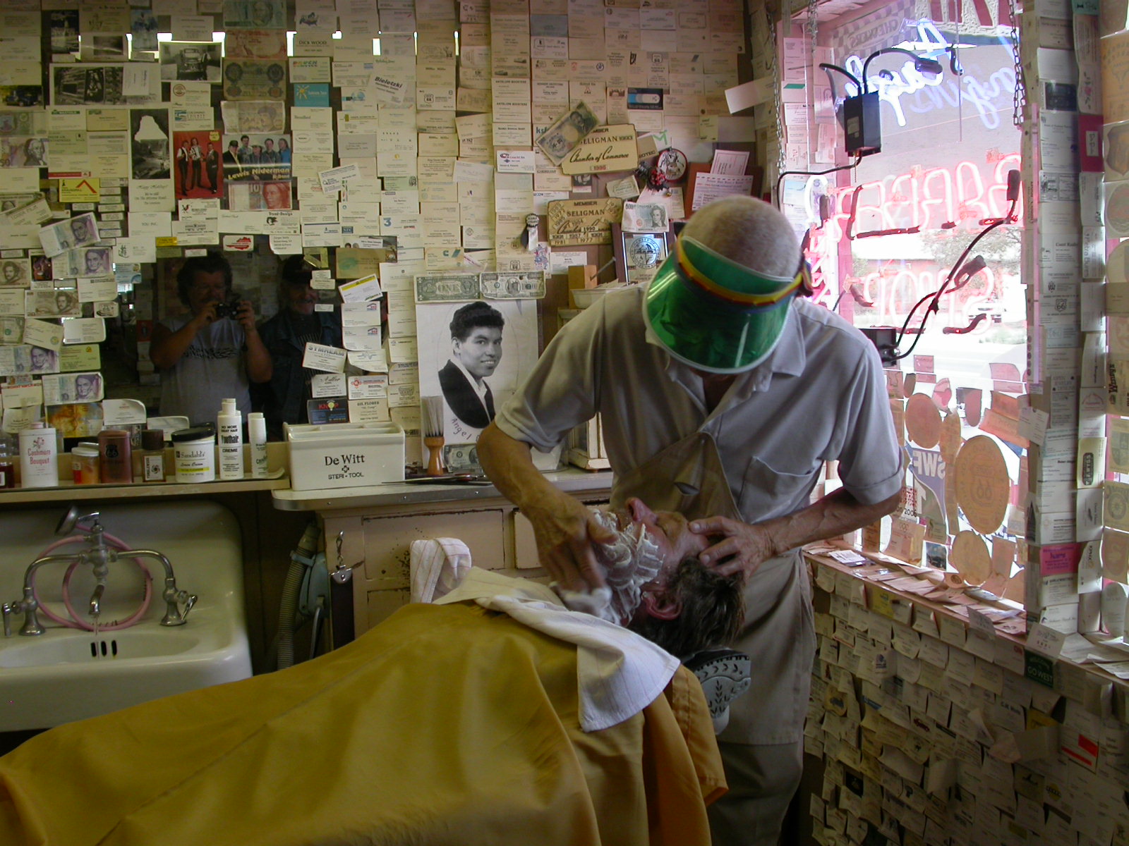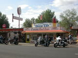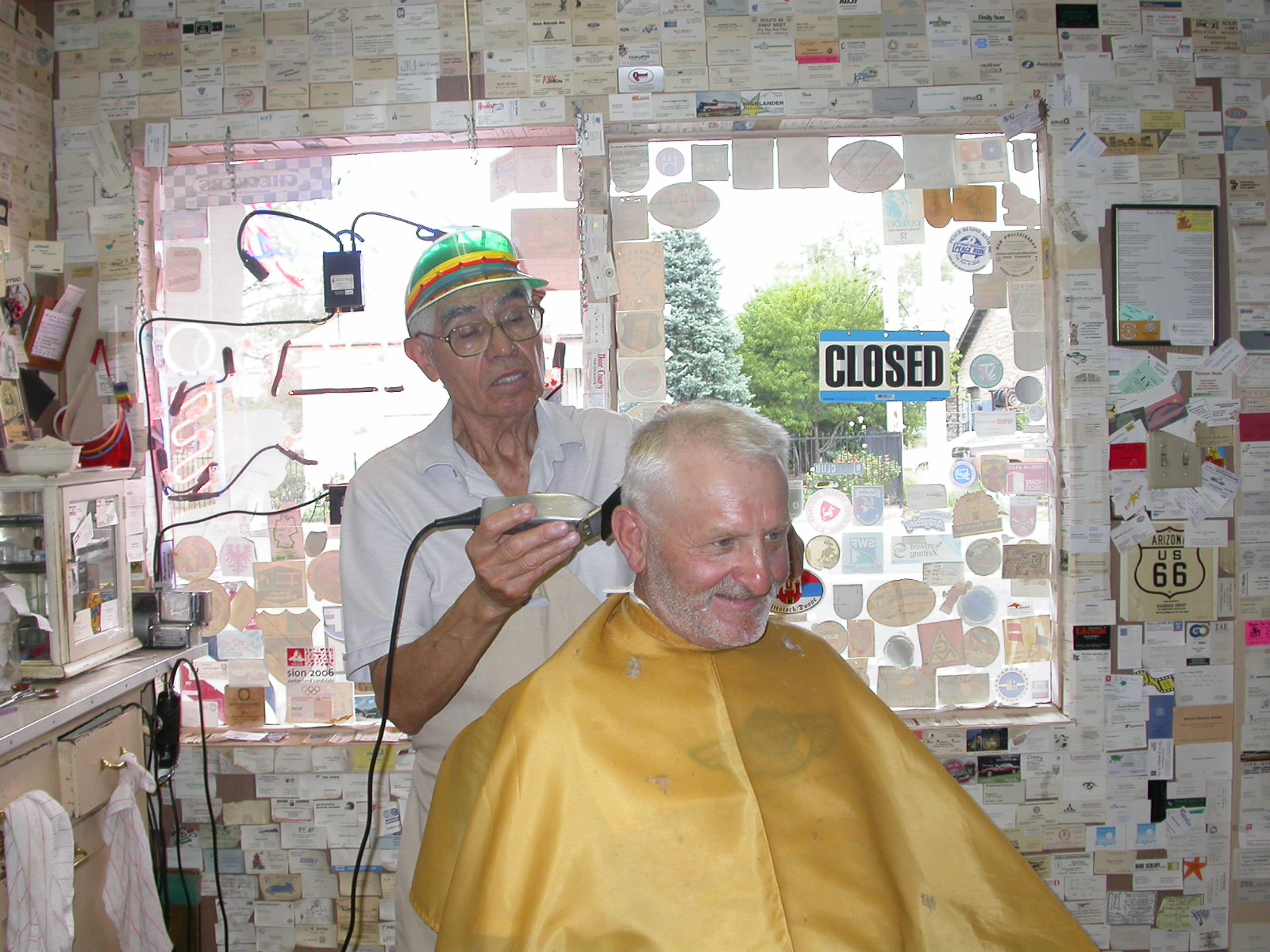 In Seligman biegt die Route 66 von der Interstate ab und hier ist das längste noch erhaltene Teilstück zu befahren. Doch bevor man dieses Teilstück befährt lohnt sich ein Halt bei den Gebrüder Delgadillo, den 'Rettern' der Route 66 in Arizona. In Juan's Snow Cap Drive-In kann man sich Verpflegen, doch Vorsicht vor seinen Spässen. Im Barber- und Gift Shop von Angel gibt's Souveniers und er beseitigt auf Wunsch auch den wilden Bart- und Haarwuchs. Diese Gelegenheit liessen wir uns nicht nehmen und nahmen auf dem Barbierstuhl für eine Behandlung Platz. Plötzlich gab es eine grosse Aufregung und ein ganzer Pulk Harleys fuhr vor den Lokalen auf. Darunter war auch Willy G. Davidson mit seiner Familie. Sie waren auf dem 'Ride Home', der Sternfahrt zu Harleys 100tem Geburtstag. Wir kamen mit ihnen in Kontakt und es war ganz interessant mal mit den Fabrikbesitzern direkt zu sprechen.