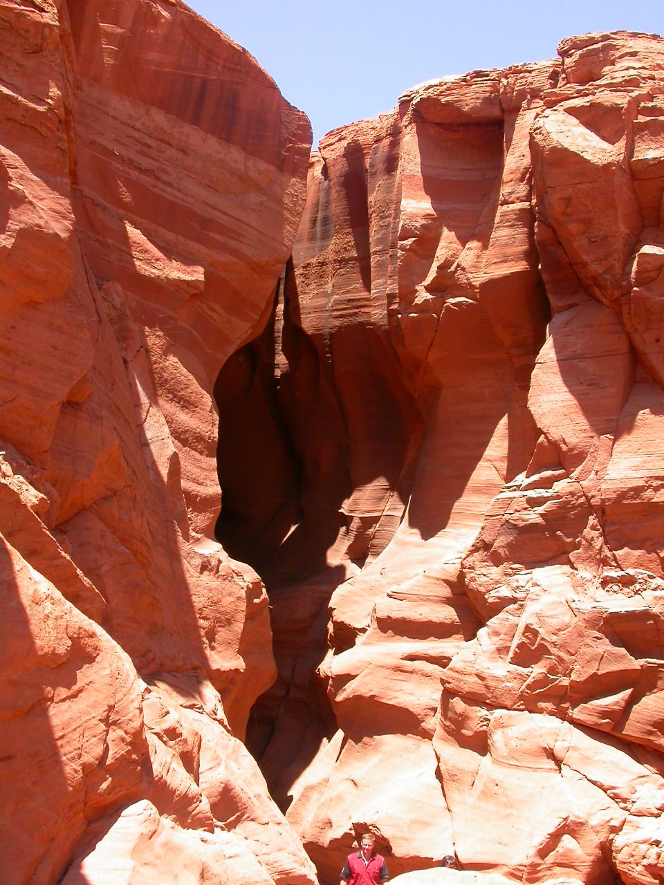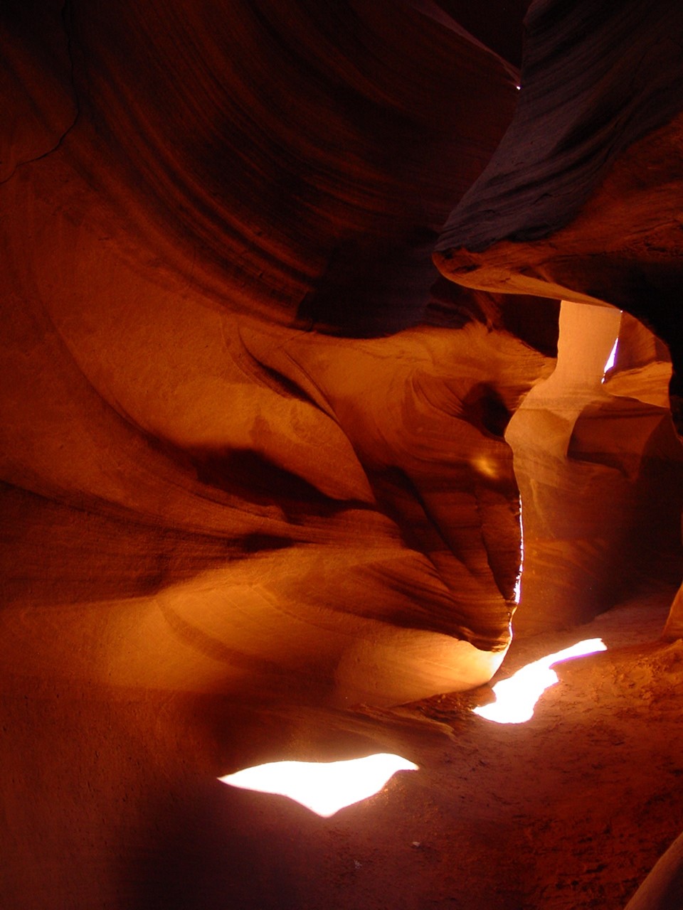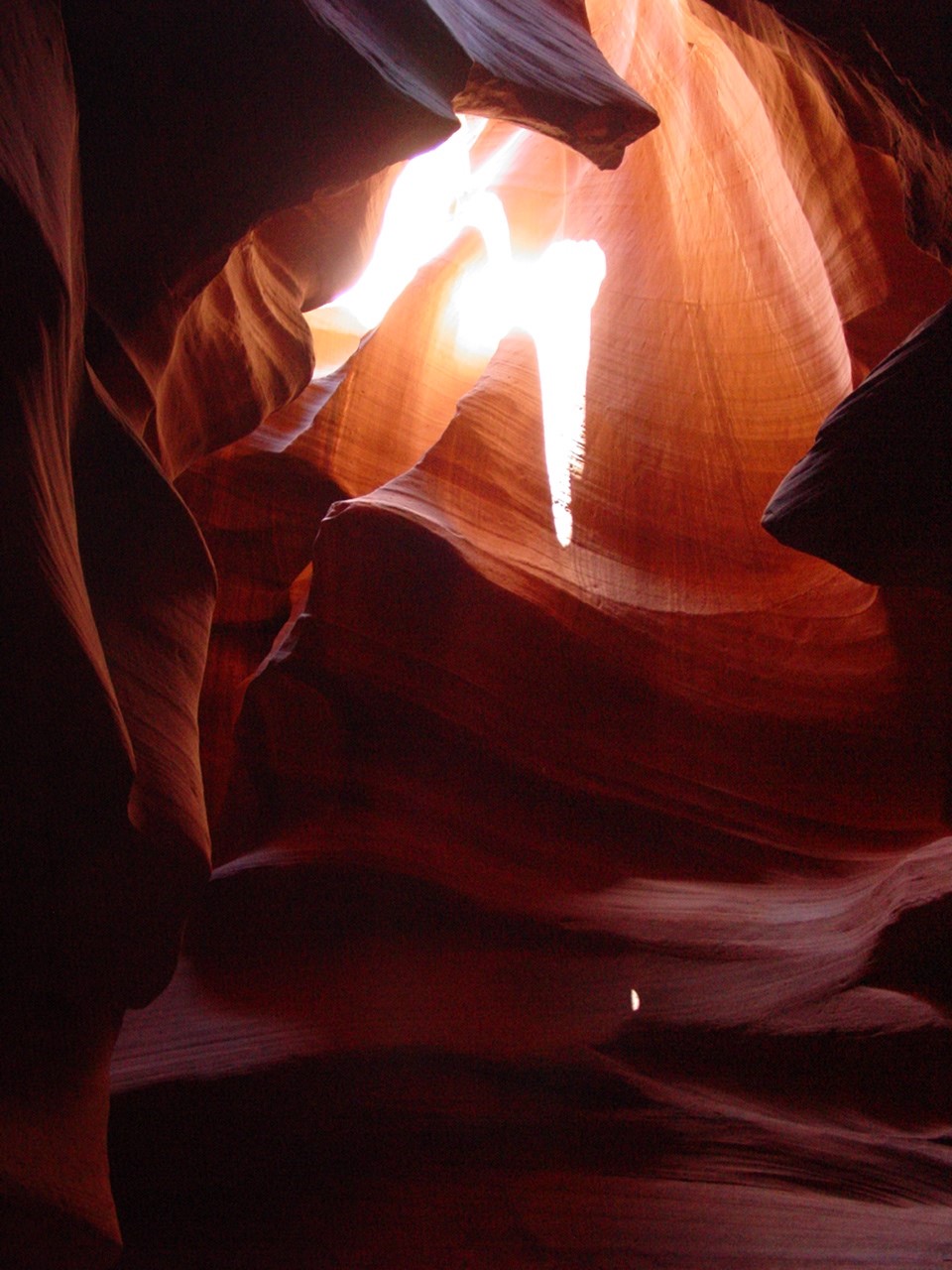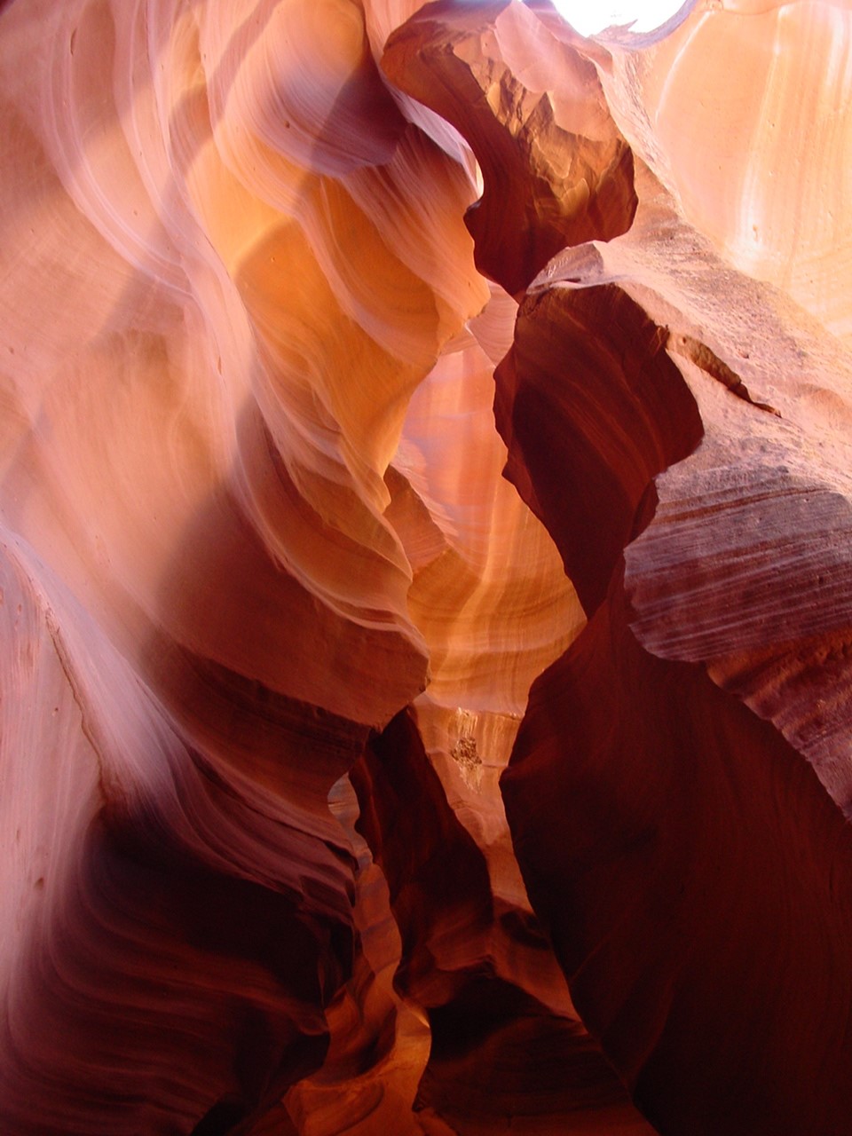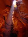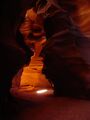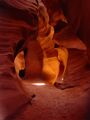 Vor der Weiterfahrt nach Flagstaff, wo wir wieder auf die 'Old Route 66' treffen sollten, besuchten wir noch eine weitere Sehenswürdigkeit der Navajo Indianer, den Antelope Canyon. Diese schmale Schlucht bietet je nach Tageszeit und Sonneneinfall ein Farbenspiel sondergleichen an den Felswänden. Der Canyon ist heute noch im Besitz der Indianer und ein indianisches Kulturgut, dass ihnen nicht von den 'Weissen' gestohlen wurde. Er wurde vor Jahren von einem indianischen Hirtenmädchen entdeckt und dient heute als touristische Einnahmequelle. Die Besichtigung wird zu Fuss gemacht und durch den Canyon hindurch ist es meistens nur gerade Schulterbreit.