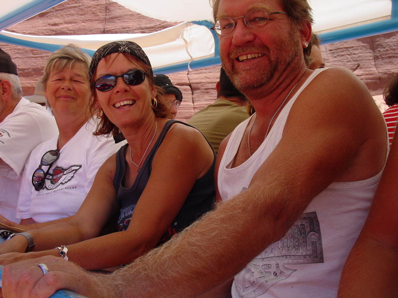 Am nächsten Tag war der erste richtige Ruhetag angesagt. Wir machten einen Ausflug, für einmal ohne die Harleys mit dem Boot über den Lake Powell zur Rainbow Bridge. Dieser Felsbogen ist der grösste seiner Art und ist ein Heiligtum der Navajo Indianer. Auf der Hinfahrt verging die Zeit recht schnell, denn im gefluteten Glenn Canyon gab es doch eindrückliche Felsformationen zu Bestaunen. Nach der Wanderung zur Rainbow Bridge und zurück war dann die Rückfahrt auf dem See doch recht anstrengend und es schien eine Ewigkeit zu dauern, bis wir wieder in Page waren.