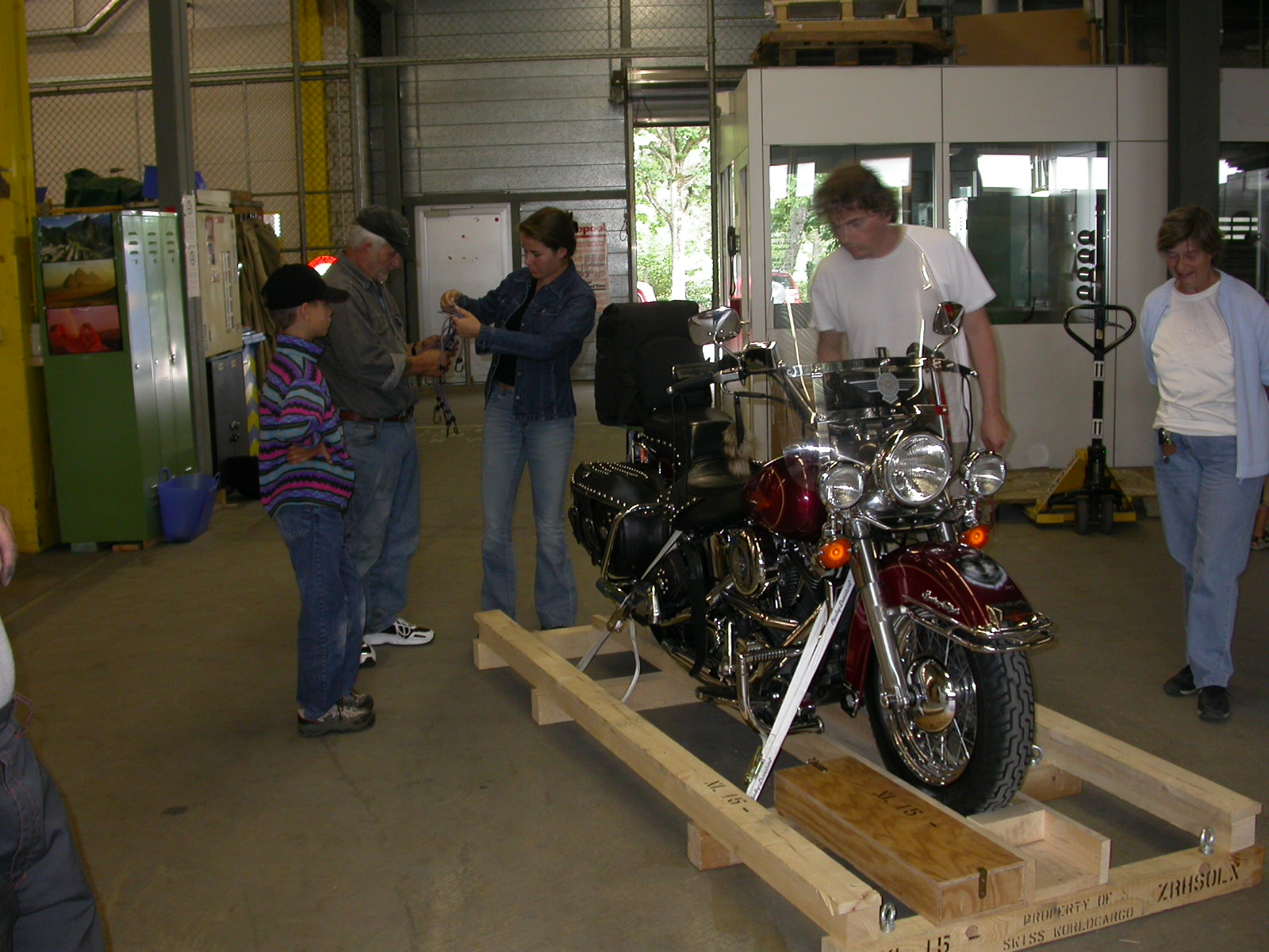 Ich hatte mein Bike ja schon in Chicago, aber die andern Drei mussten auch noch für den Transport und die Tour vorbereitet (Service, neue Pneus, etc) und verpackt werden.