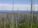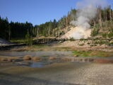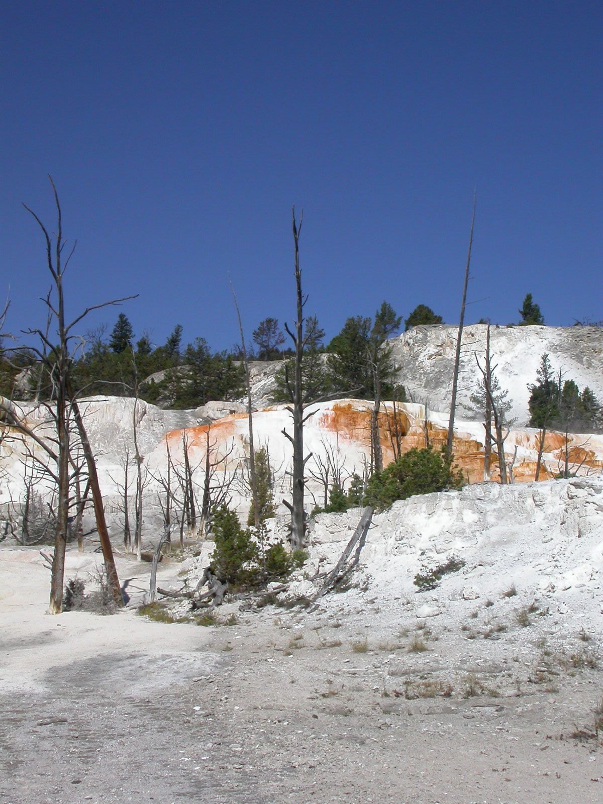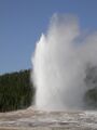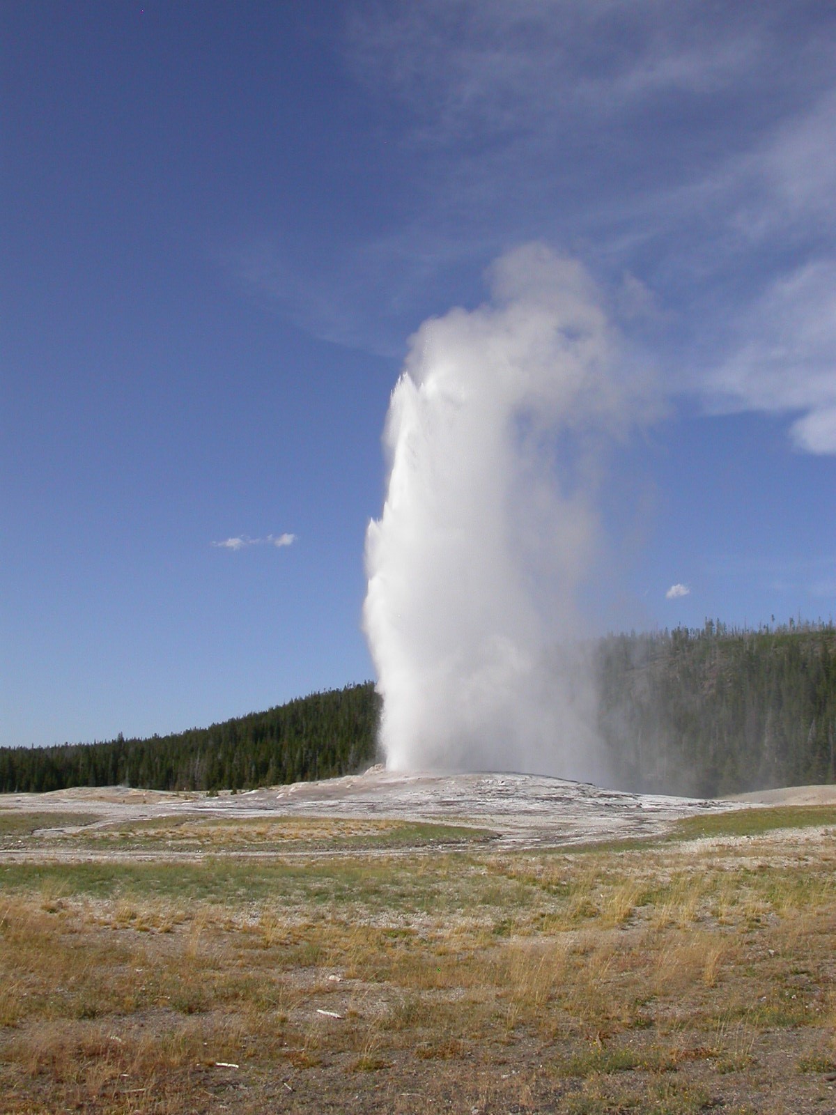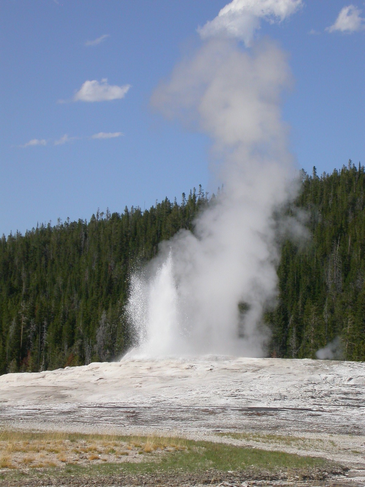 Hier im Yellowstone Nationalpark war Natur pur angesagt. Auf der grossen Rundfahrt (ca. 220 km) werden dem Besucher unvergessliche Bilder geboten. Wilde Tiere wie Bisons, Hirsche, Bären, etc. über die heissen vulkanischen Quellen mit den farbenprächtigen Steinablagerungen bis zum aktiven Old Faithful Geisyr. Dieser schiesst im Stundenrhytmus seine Fontäne in die Höhe, wobei er es dabei recht spannend macht. Das ganze Spektakel dauert ca. eine viertel stunde und jedesmal wenn er ein bisschen 'hustet', meint der Zuschauer es geht los und schiesst Foto um Foto, bis er sich nach zahlreichen 'Fehlalarmen' endlich in die Höhe ergiesst.