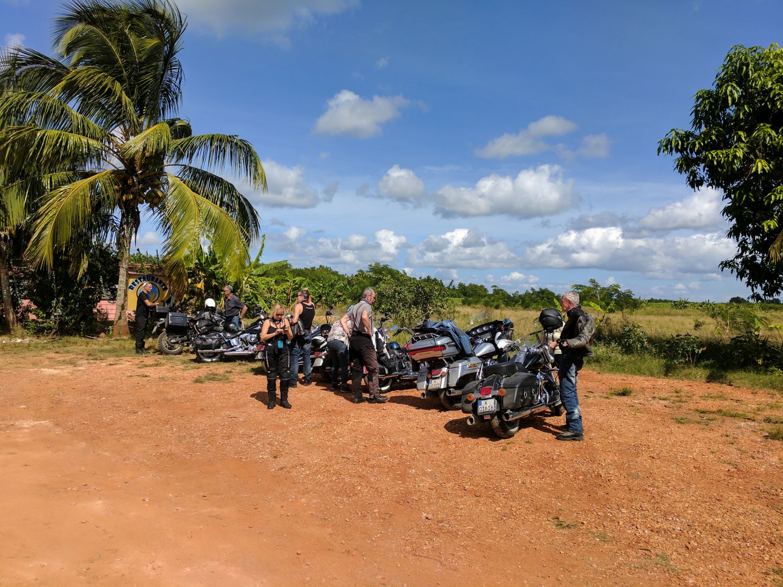 Wenn nicht ein Bike mit eingeschaltetem Licht wäre abgestellt worden. Mit leerer Batterie liess sich die Maschine nicht starten und an ein Anstossen auf dem Feldweg war nicht zu denken. Die Kubaner sind aber sehr hilfbereit und schon bald stand ein Auto zum überbrücken da. Beim Abfahren starb dann der Motor wieder ab, doch mittlerweile hatte man ja Übung mit dem Überbrücken.