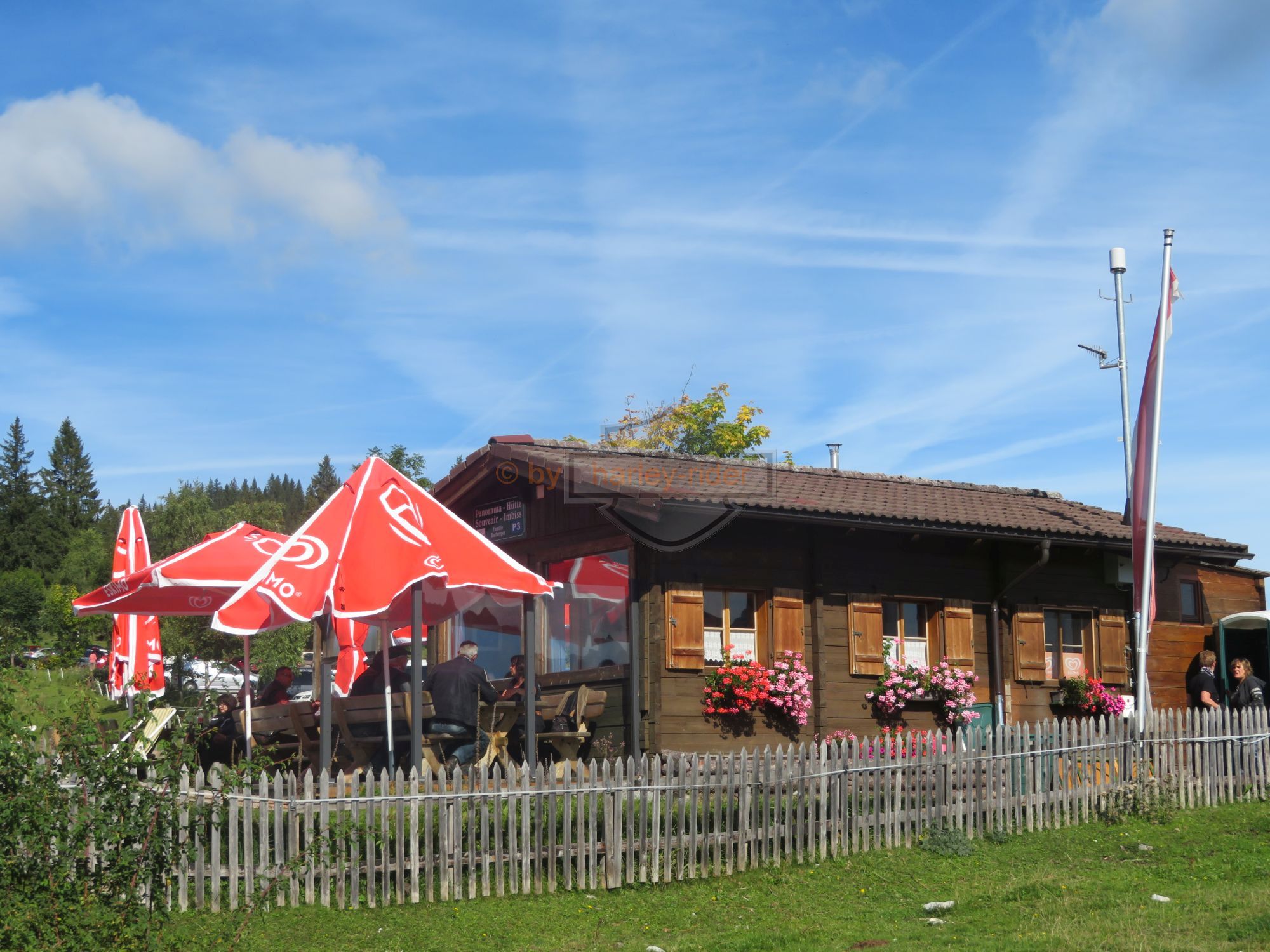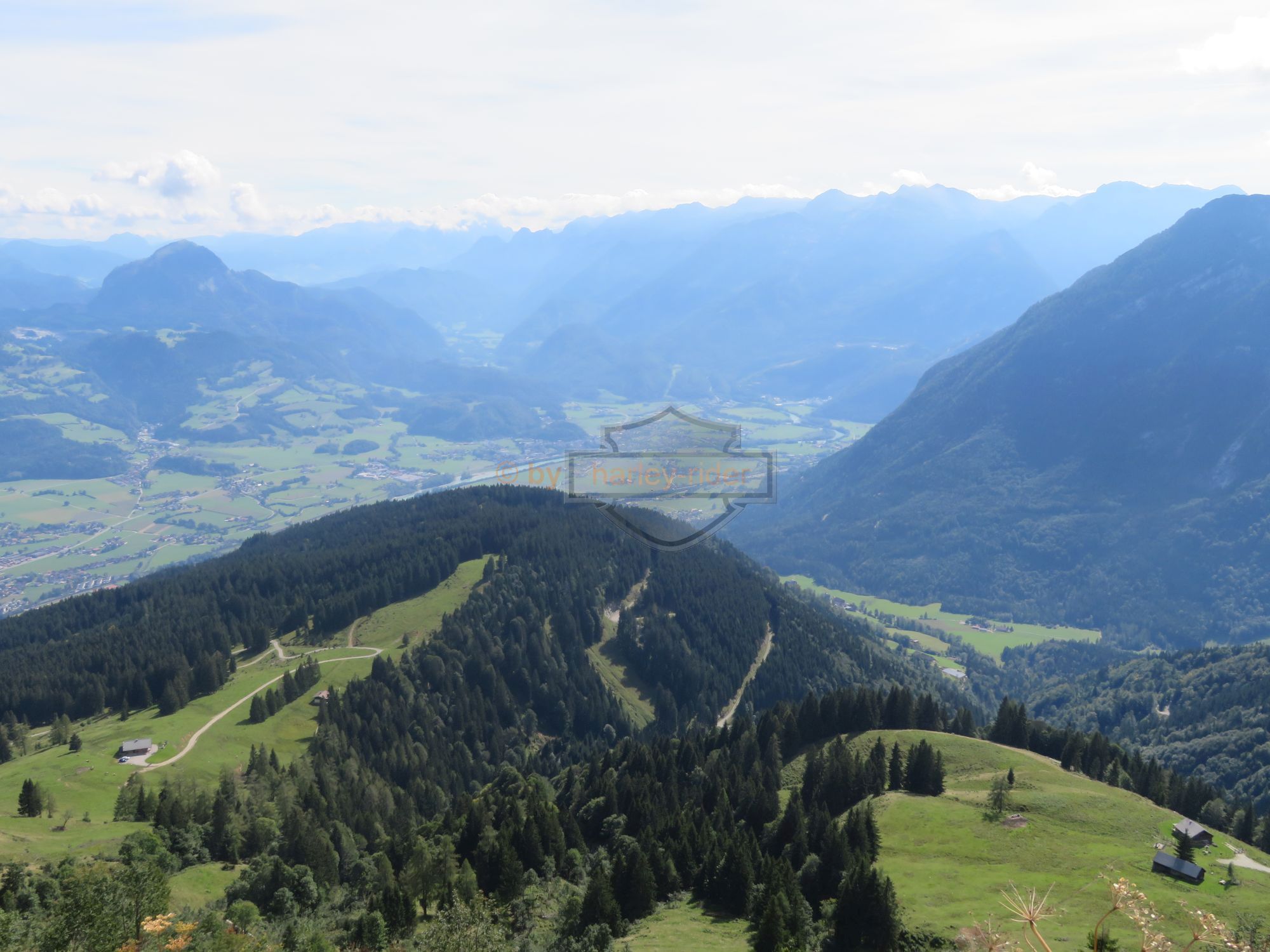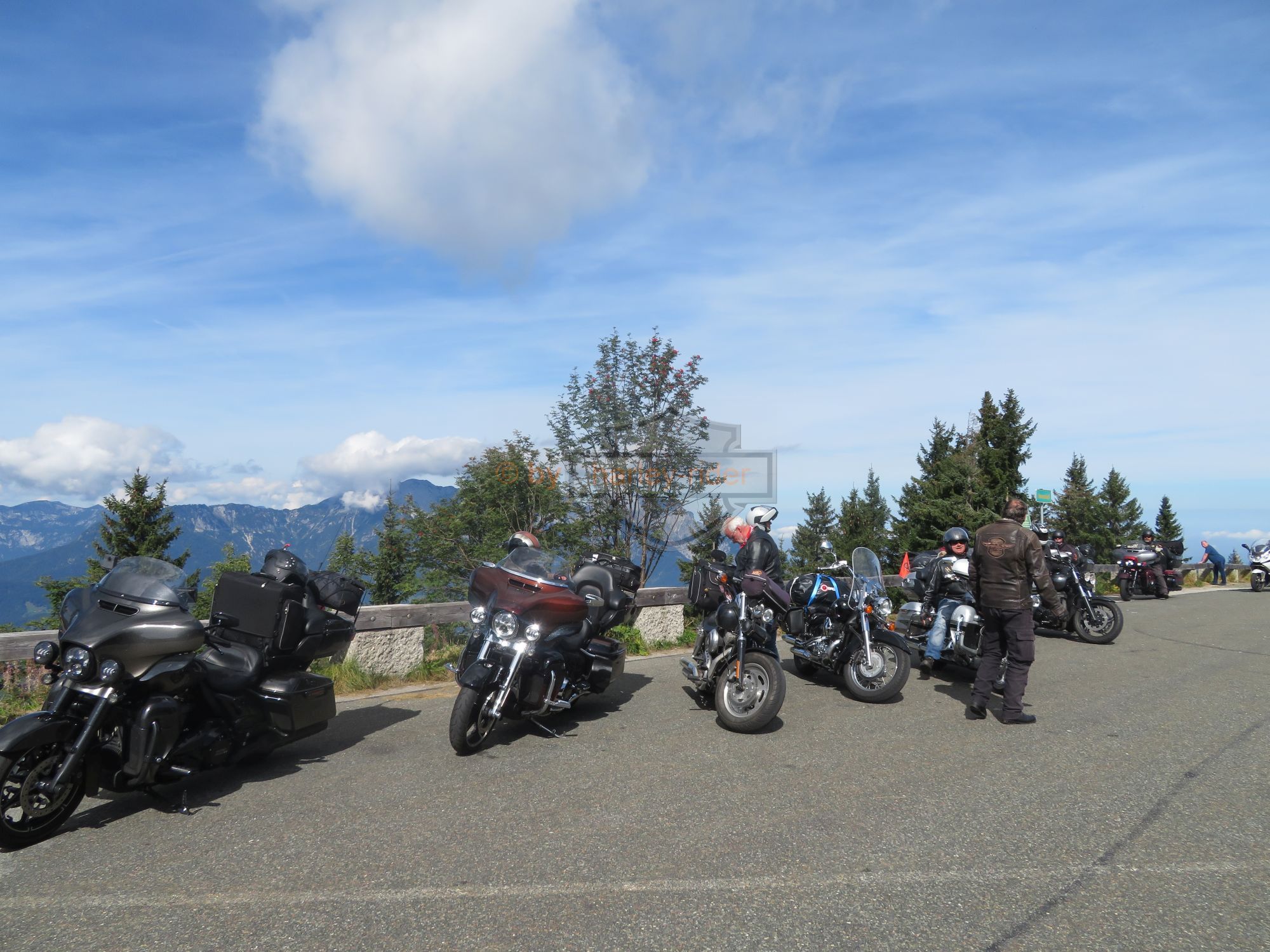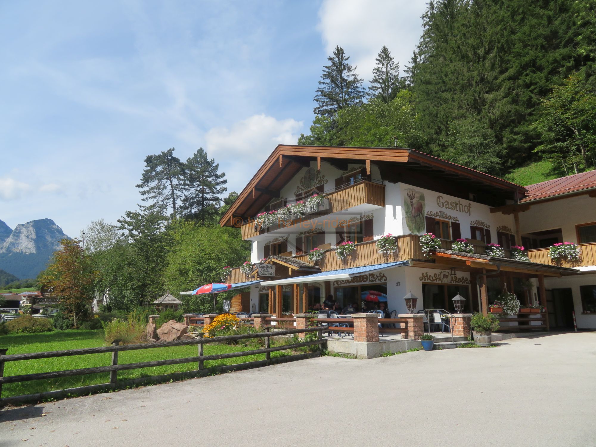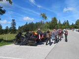 Über die Postalm und einem Kaffeehalt bei der gleichnamigen Panoramahütte' gelangten wir auf die Westseite des Tennengebirges und fuhren ins Berchtegadener Land. Dort lockte die geschichtsträchtige Rossfeld Panoramastrasse sowie der Obersalzberg. Der Parkplatz und das Restaurant am Obersalzberg war komplett voll, so dass wir für den Mittagshalt bis Ramsau weiterfuhren. Beim Mittagsahalt zeigten einige von uns ihre 'servicetechnischen' Qualtäten indem wir der Wirtsfrau behilflich waren.