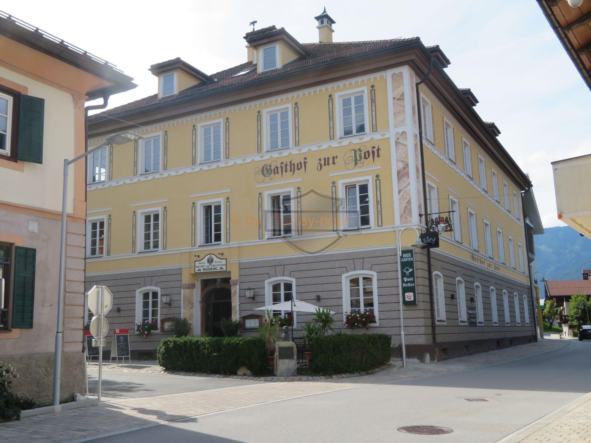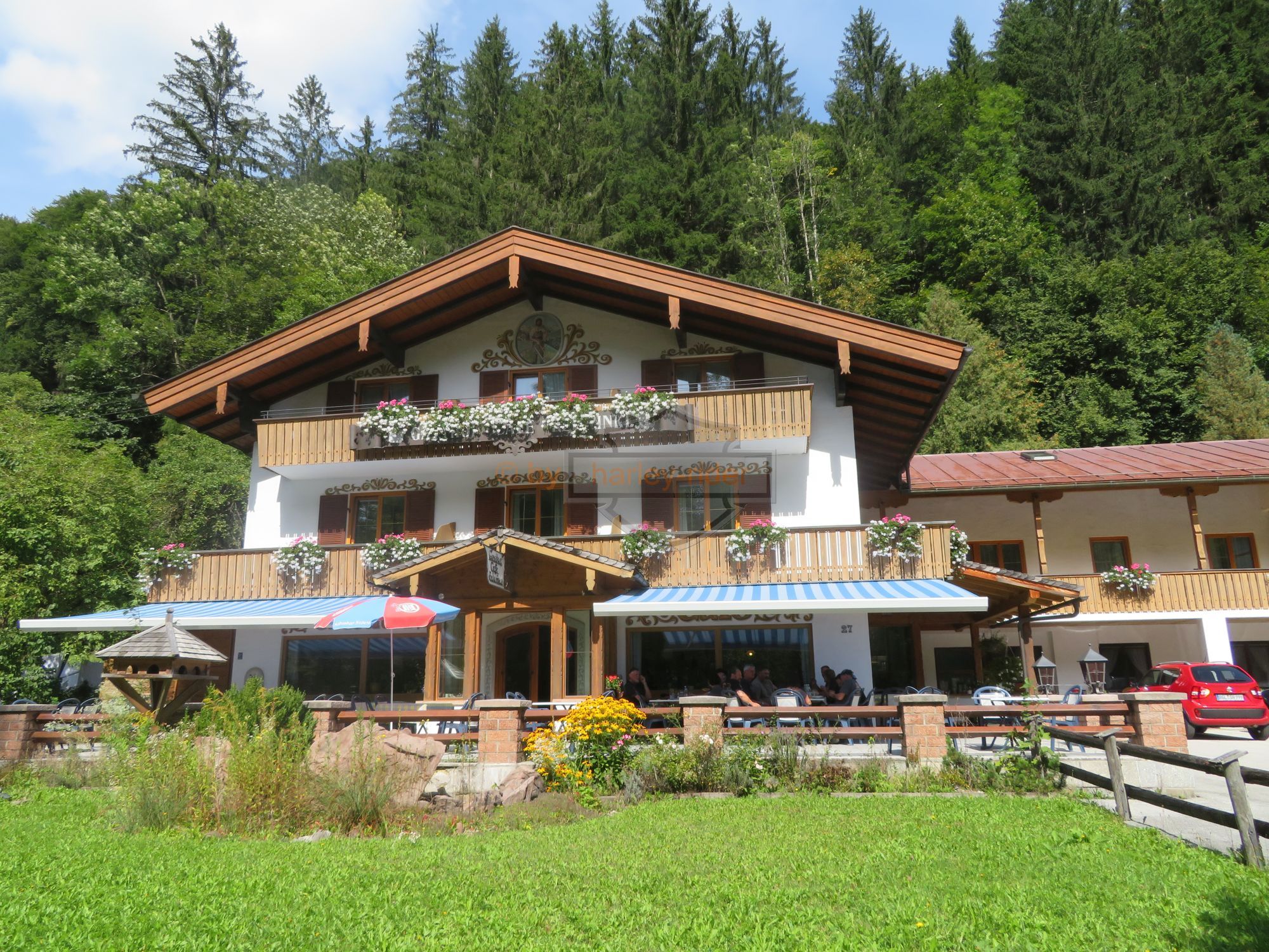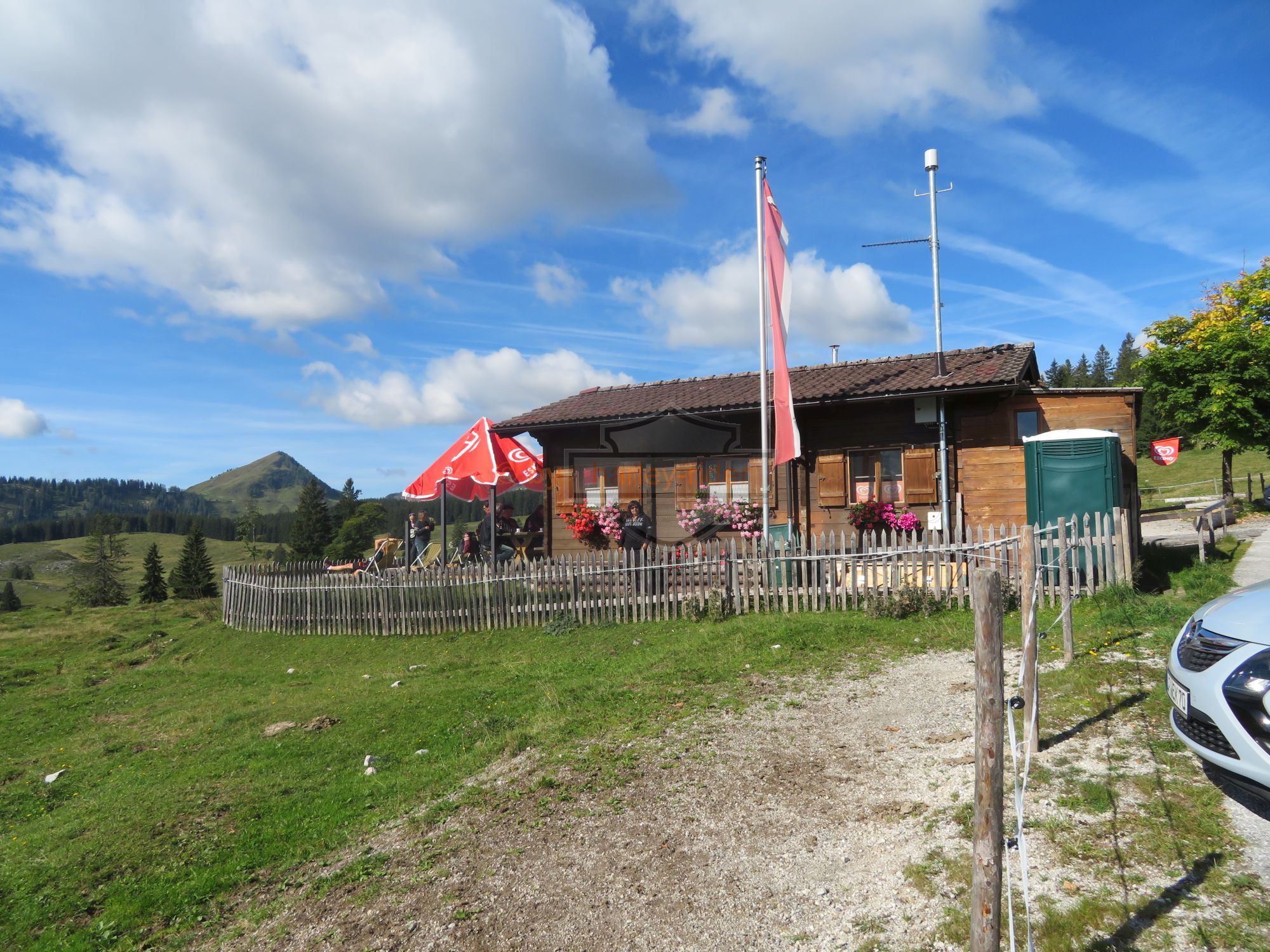 Über den Unkenpass kamen wir zurück nach Österreich und machten bei Waidring im schönen 'Biergarten' des Gasthofs Post einen Kaffee- / Dessserthalt. Offenbar gefiel dieser Garten aber nicht allen, denn sie gingen weiter zu einem Cafe/Restaurant, kamen aber reumütig zurück, wieso auch immer ...
