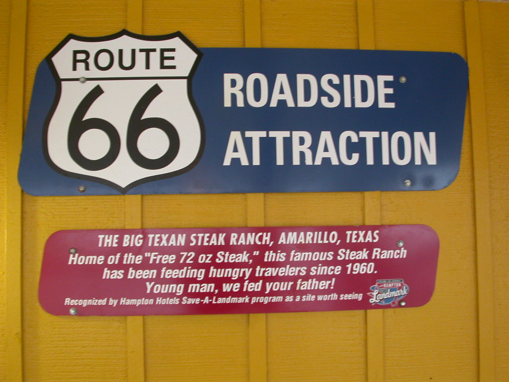Quartier wurde heute auf der 'Big Texan Steak Ranch' bezogen und in diesem legendären Steakhouse stärkten wir uns dann auch entsprechend mit einem schönen Stück Fleisch. Auf das 72 Unzen (ca. 2 kg) Stück verzichteten wir wohlweisslich, aber so 16 Unzen hatten es auch schon in sich.