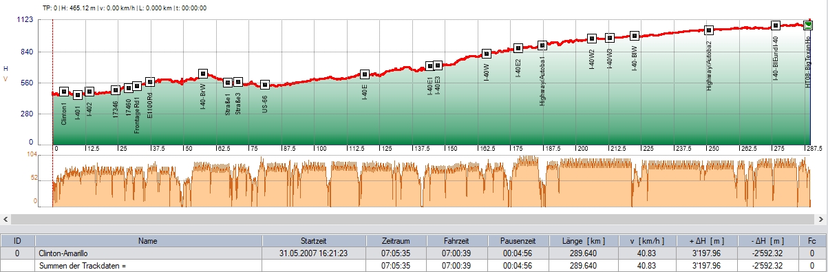 Einmal links und einmal rechts der Interstate #40 zieht sich hier in Texas die Route durch den Panhandle. Wären diese Überfahrten nicht, so würde wohl bis Amarillo eine einzige Gerade sein...