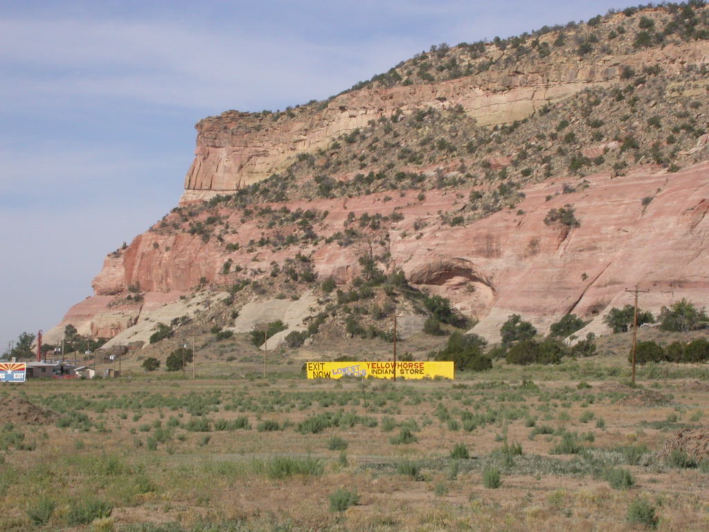 Einen kurzen Teil konnten wir entlang der roten Klippen der Interstate noch ausweichen, aber schon kurz danach endete die Route in Sackgassen, vor Sperrgittern oder führte als Gravel-Road (Schotter-, Naturstrasse...) weiter, so dass wir doch die Autobahn vorzogen.