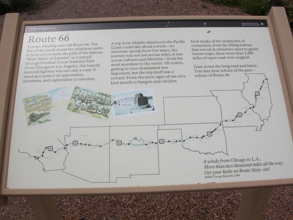 Ein erster Nationalpark Höhepunkt dieser Reise ist die Fahrt entlang der 'Painted Dessert' und durch den 'Petrified Forest'. Es ist schon erstaunlich, was hier in der flachen Prärie plötzlich für Zeitzeugen der Erdentwicklung zum Vorschein treten. Sogar ein kleines Mahnmal für die 'Mother-Road' ist auf der Strecke vorhanden.