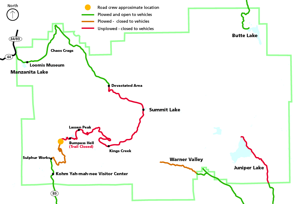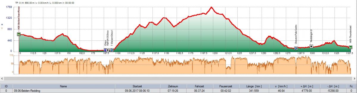 Das Wetter war recht nass und kühl, doch die Verkäuferin versicherte mir, dass es sich trotzdem der der Lassen Vulcanic Nationalpark wegen Schnee noch geschlossen ist, dorthin zu fahren. Sie sollte Recht behalten, es gab heute dadurch wieder einmal im Ganzen rund 300 Kilometer Kurven zu fahren. Da die Strasse stellenweise noch nass war, musste ich entsprechend vorsichtig sein.