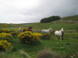 Am Embalsa de San Juan wollte ich eigentlich unseren Mittagsrast machen, doch ausser einer Staumauer war nicht viel zu sehen und wir fuhren weiter Richtung Sierra de Gredos. Auf dem Weg die Sierra von der Nordseite her zu befahren begann es leicht zu regnen und als wir etwas weiter sehen konnten waren die Berge total voller schwarzer Wolken. Zum Glück hatte es da bald einen Kreisverkehr, so dass wir 360 Grad wenden konnten und zurück nach San Martin fuhren. Wir blieben also auf der Südseite der Sierra wo das Wetter noch trocken aussah und nahmen dann unser Mittagessen auf einem Spielplatz mit Tisch und Bänken ein.