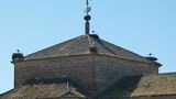 Ich studierte also das Navi und die Karten und sah, dass die Naturstrasse ca. zwei Kilometer weiter auf eine normale Strasse traf. Ich erklärte Stefan wo er durchfahren musste und wir uns dann wieder treffen sollten. Er fuhr also zurück und Albert und ich weiter, bis zu der abgemachten Kreuzung. Hier warteten wir recht lange und niemand kam. So entschlossen wir uns zurückzufahren : Albert die Naturstrasse und ich die Strasse auf welche die Andern zu uns kommen sollten. Den Albert traf ich dann wieder da wo das 'Bachbett' begann aber von den Andern war nichts zu sehen. Also zurück bis zum Spielplatz, aber auch da nichts. Wir fuhren dann wieder zum abgemachten Treffpunkt, da erhielt Albert von Edith ein SMS, welche besagte dass sie auf einer andern Route nach Oropesa fuhren. Also fuhren wir zu zweit südwärts durch die Ausläufer der Sierra de Gredos auf die Autobahn nach Oropesa wo wir doch trocken ankamen und uns der Parador von Oropesa für die nächsten zwei Nächte als Gäste erwartete.