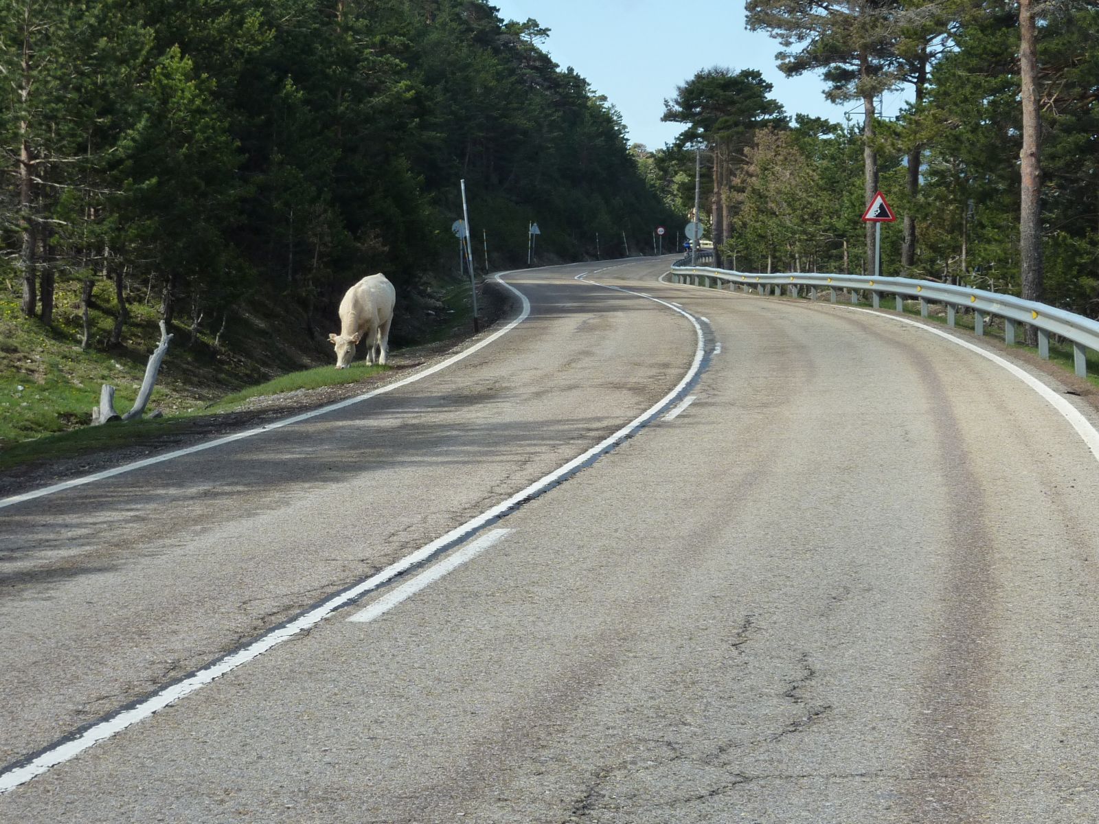 Da Vorgestern die Fahrten durch die verschiedenen Sierras ins Wasser fielen, hofften wir heute auf gute Verhältnisse bei der Durchquerung der Sierra de Guaderrama nördlich von Madrid und der Sierra de Gredos nördlich von Oropesa. Zuerst führte uns die Route noch entlang von Feldern bevor der erste Pass, der Puerto de Navafria uns in die Sierra de Guaderrama hinein führte. Nach dem Pass erreichten wir den Pinilla Stausee und fuhren dann westwärts zum Puerto de Cotos hinauf wo wir uns ein Kaffee gönnten. Hier hatte es recht viele Wanderer, die wohl den Naturalpark von Peñalara besuchten.