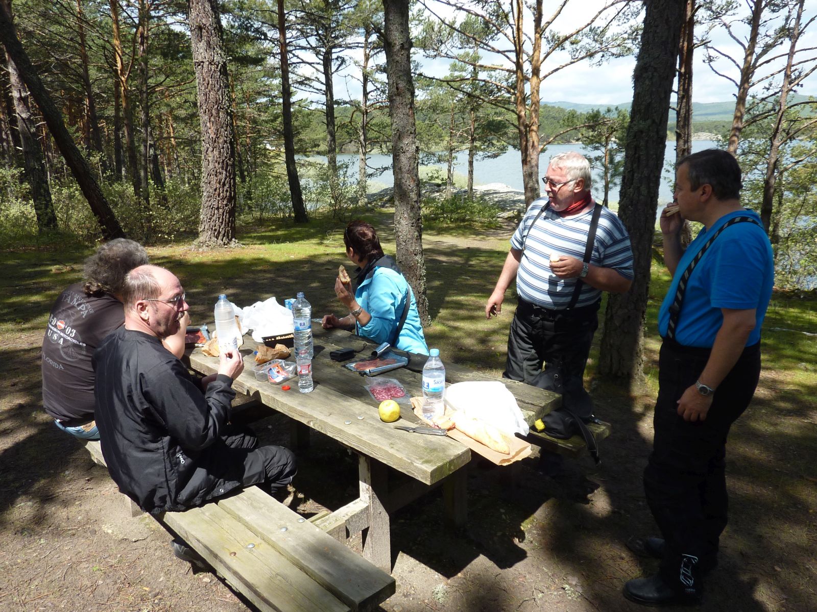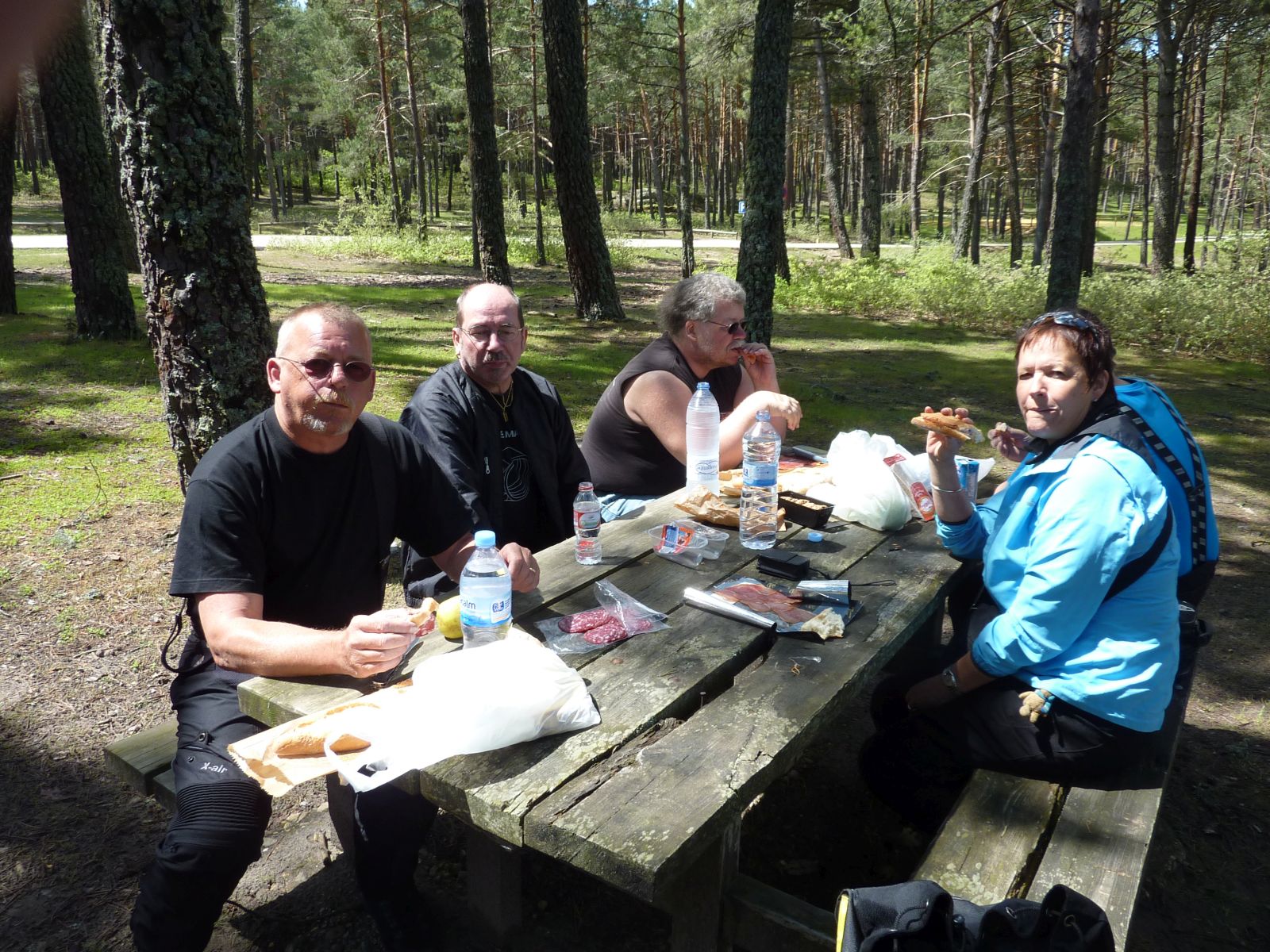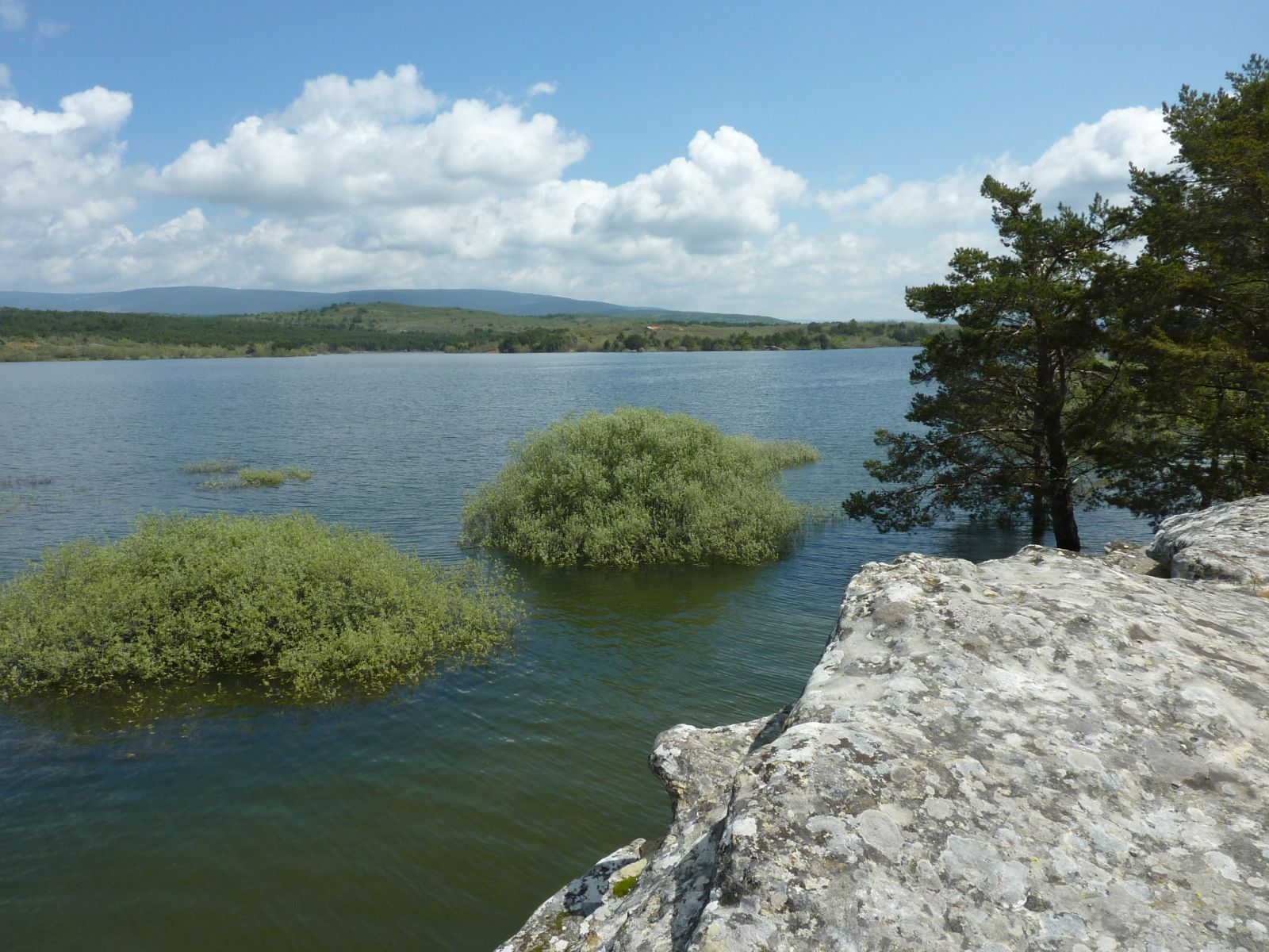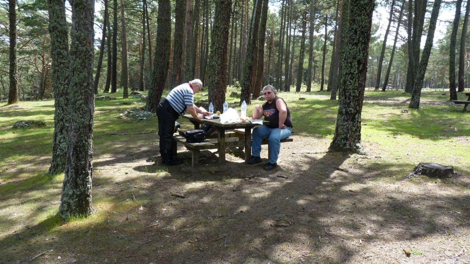 Wir erreichte so über die Hauptstrasse und einem kleinen Stück Autobahn den Stausee wo wir Mittagsrast hielten. Beim Camping war es sehr nass am See und auch keine öffentliche Infrastruktur vorhanden. Ein paar Kilometer weiter fanden wir dann an der Playa Pita das gewünschte : offener Wald mit vielen Picknickplätzen und genügend Parkplatz. Das Areal ist da so gross, dass wohl an einem schönen Sommertag recht viele Leute von Soria und der weiteren Umgebung hierhin kommen um sich zu erholen. Heute war aber ausser uns niemand da und wir konnten die Ruhe beim Picknicken am Stausee richtig geniessen.