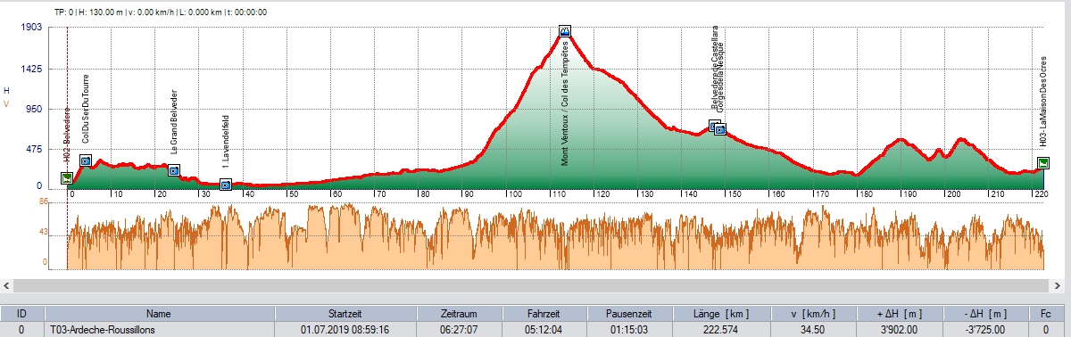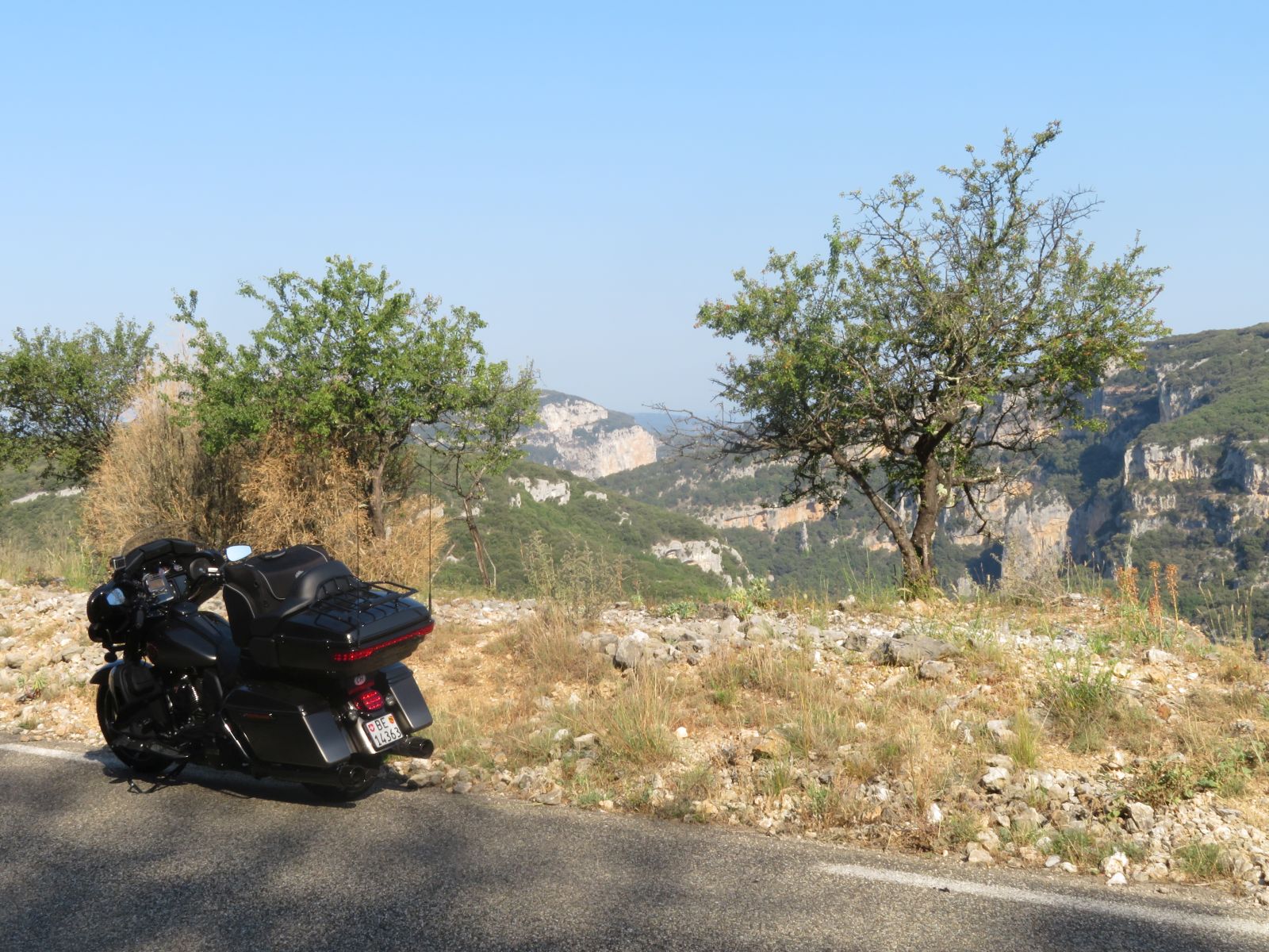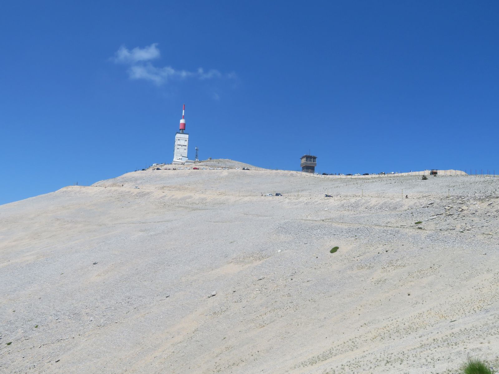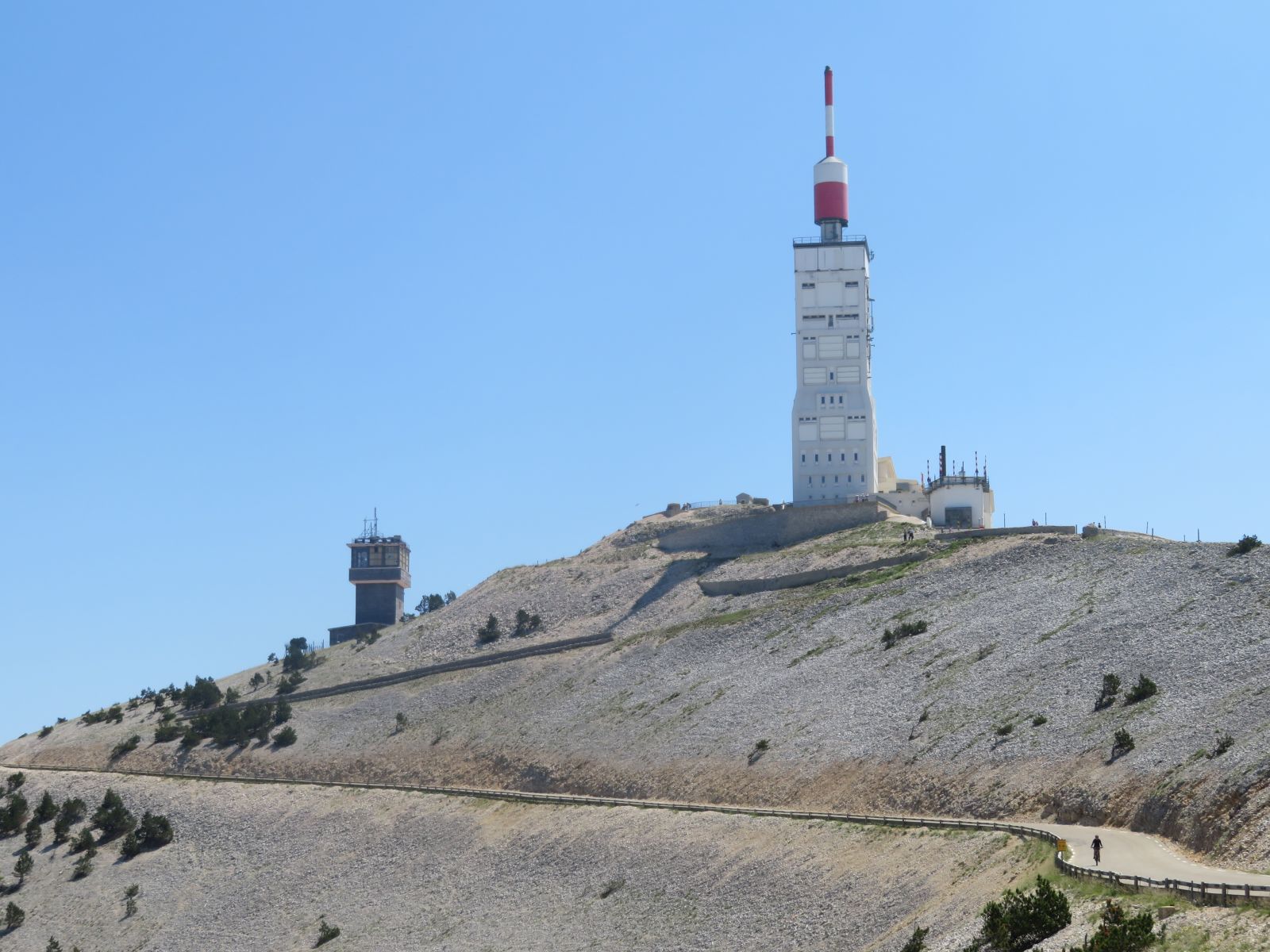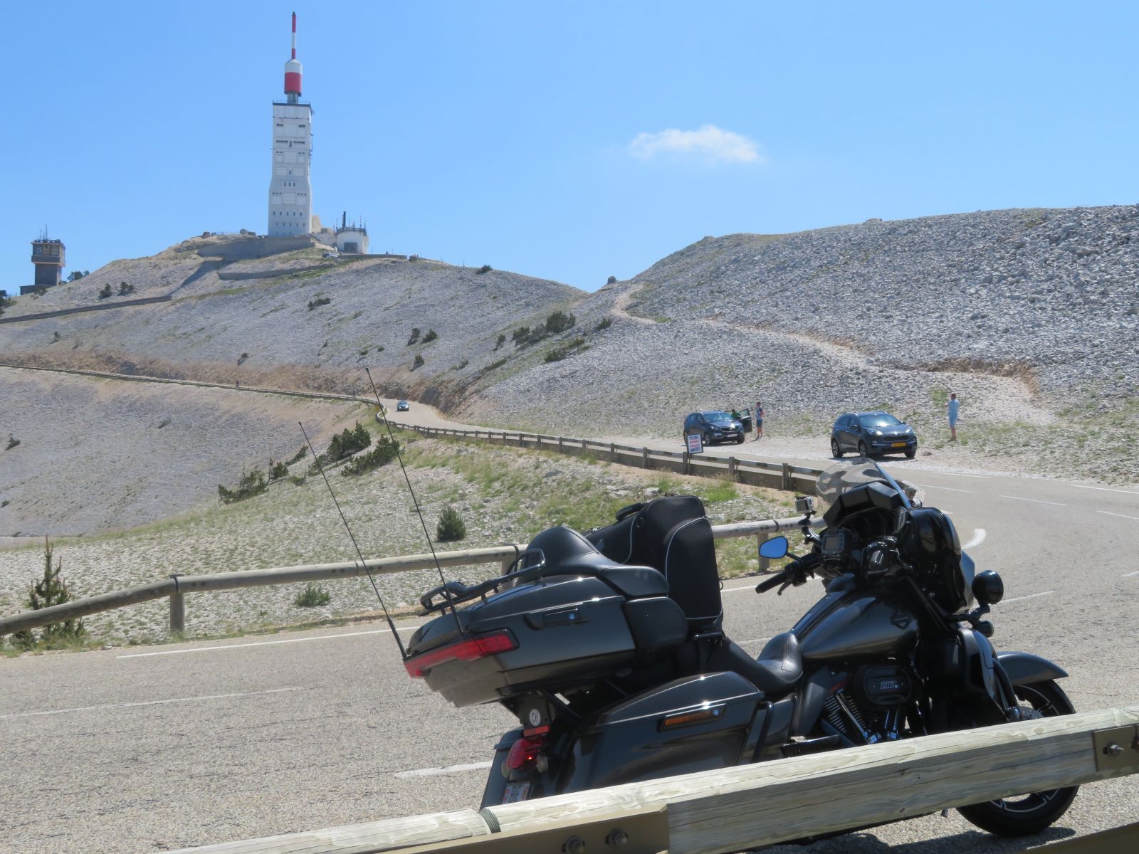 Nach diesem Fotostop ging es dann in das Mekka der 'Gümmeler', dem Mont Ventoux. Hut ab vor all denen, die mit eigener Kraft da auf dem Zweirad hochfahren. Ich bin von Norden her hochgefahren und da ist man recht lange im Wald. Die bekannte Mondlandschaft erreicht man erst erst fast zuoberst auf dem Gipfel und dann natürlich auf der südlichen Abfahrt.