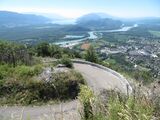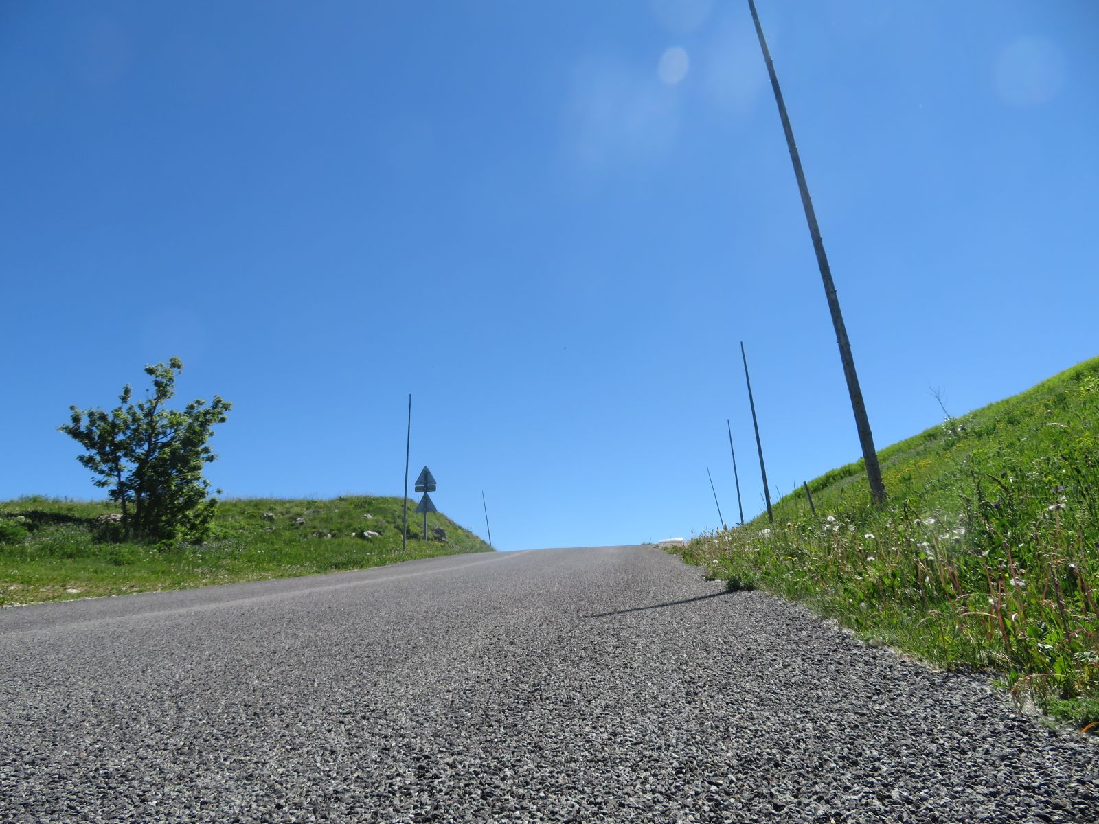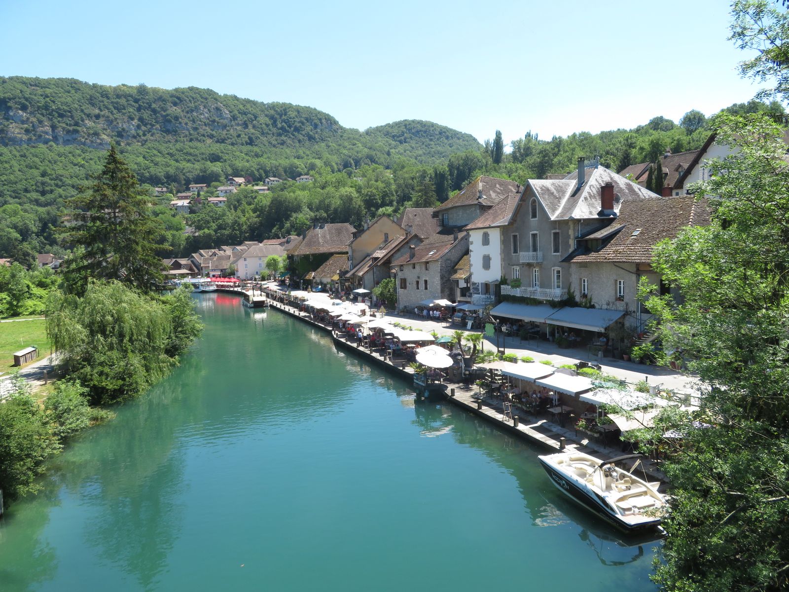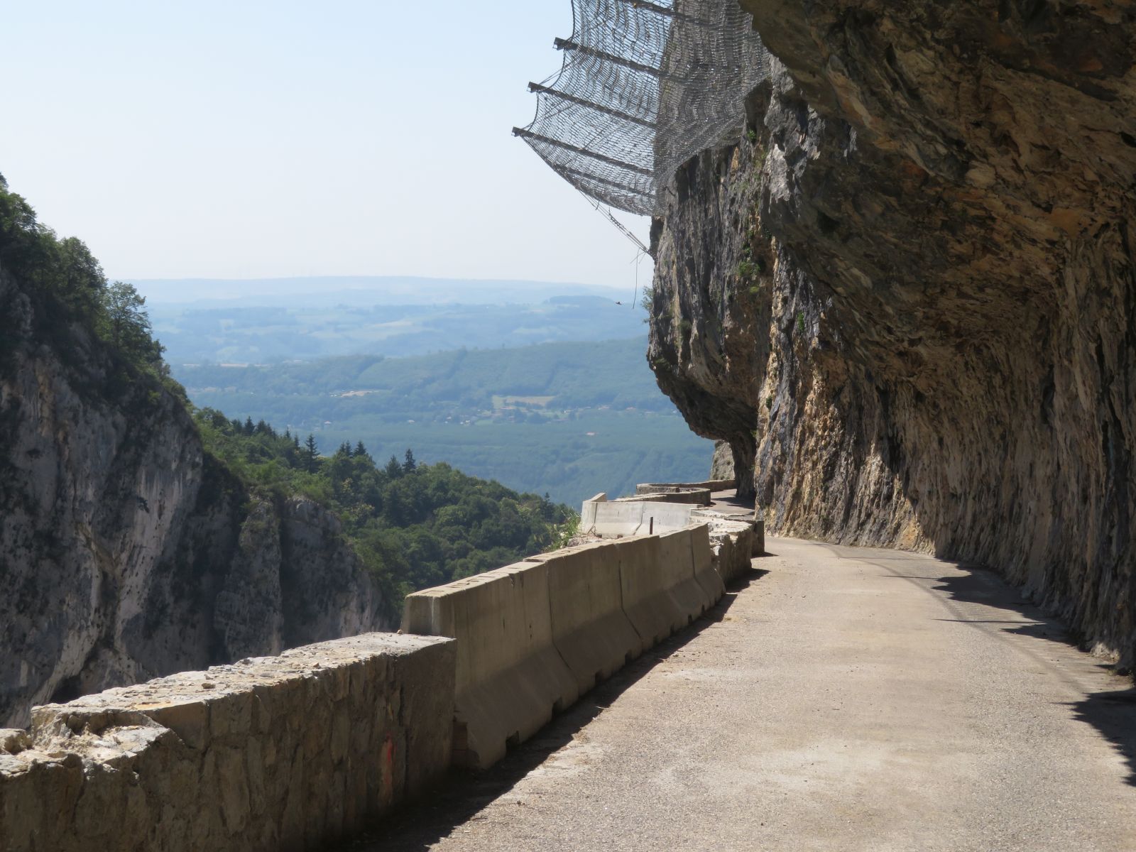 Danach ging es südwärts auf kleinen Nebenstrassen zum Col de la grand Colombier hinauf, wo man eine sensatinelle Aussicht gegen den Mont Banc und Lac du Bouget hat. Weiter führte mich die Route über Krete durch die heiseen Kurven bei den Lacets du Grand Colombier nach Chenaz, einem klenen Dorf am Canal de Saviere.